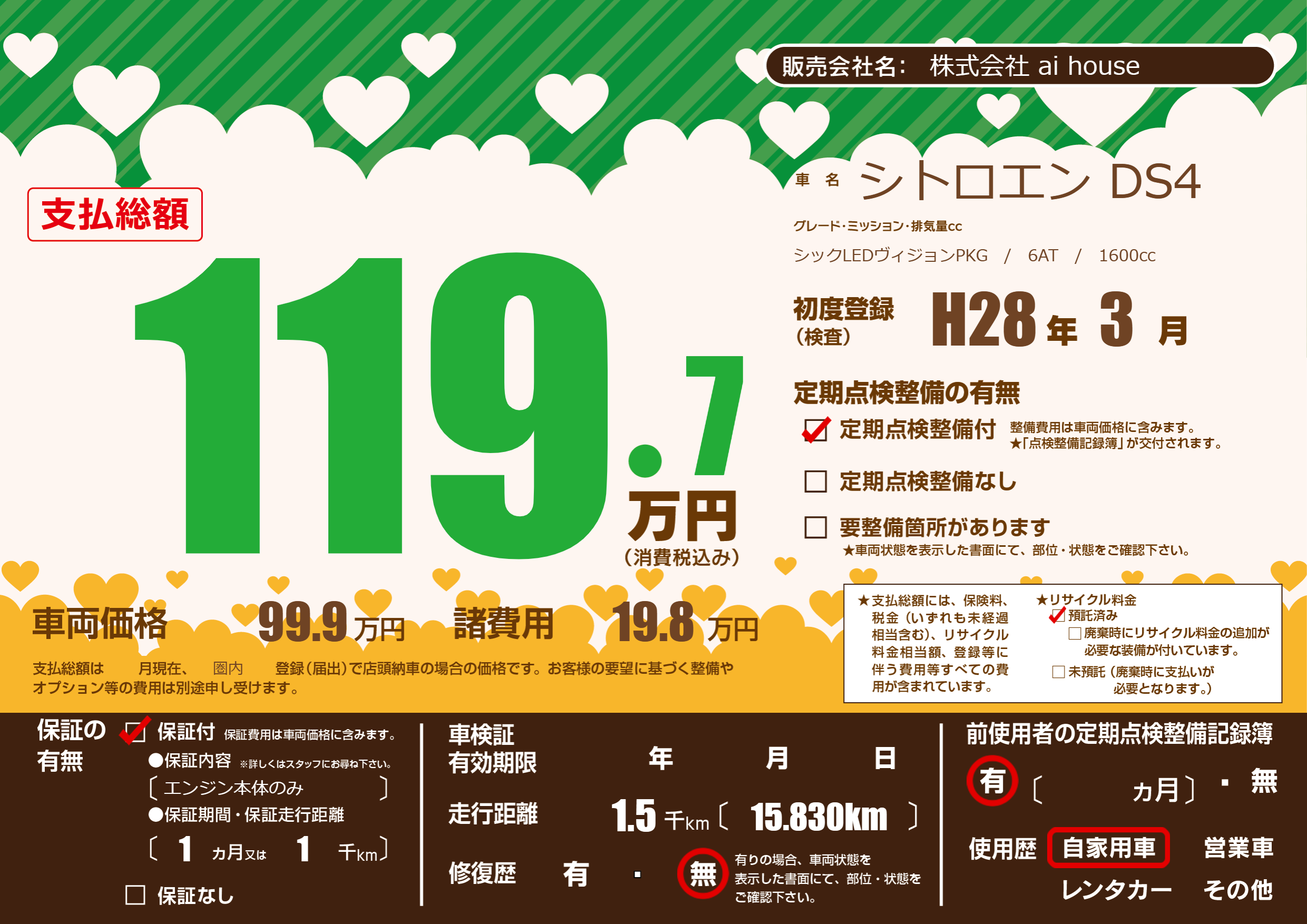 | 定期点検整備 | 定期点検整備あり | ||