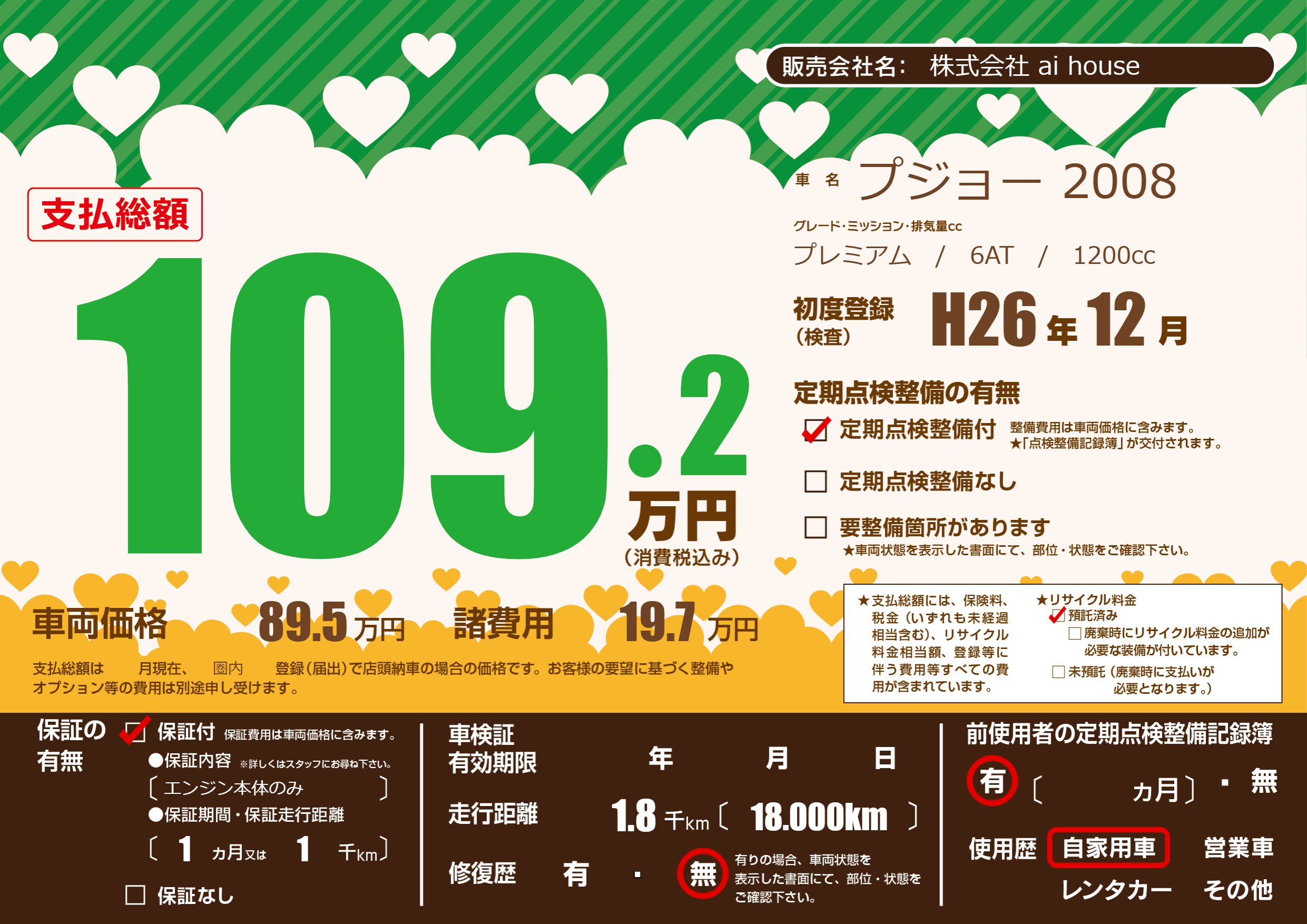 | 定期点検整備 | 定期点検整備あり | ||