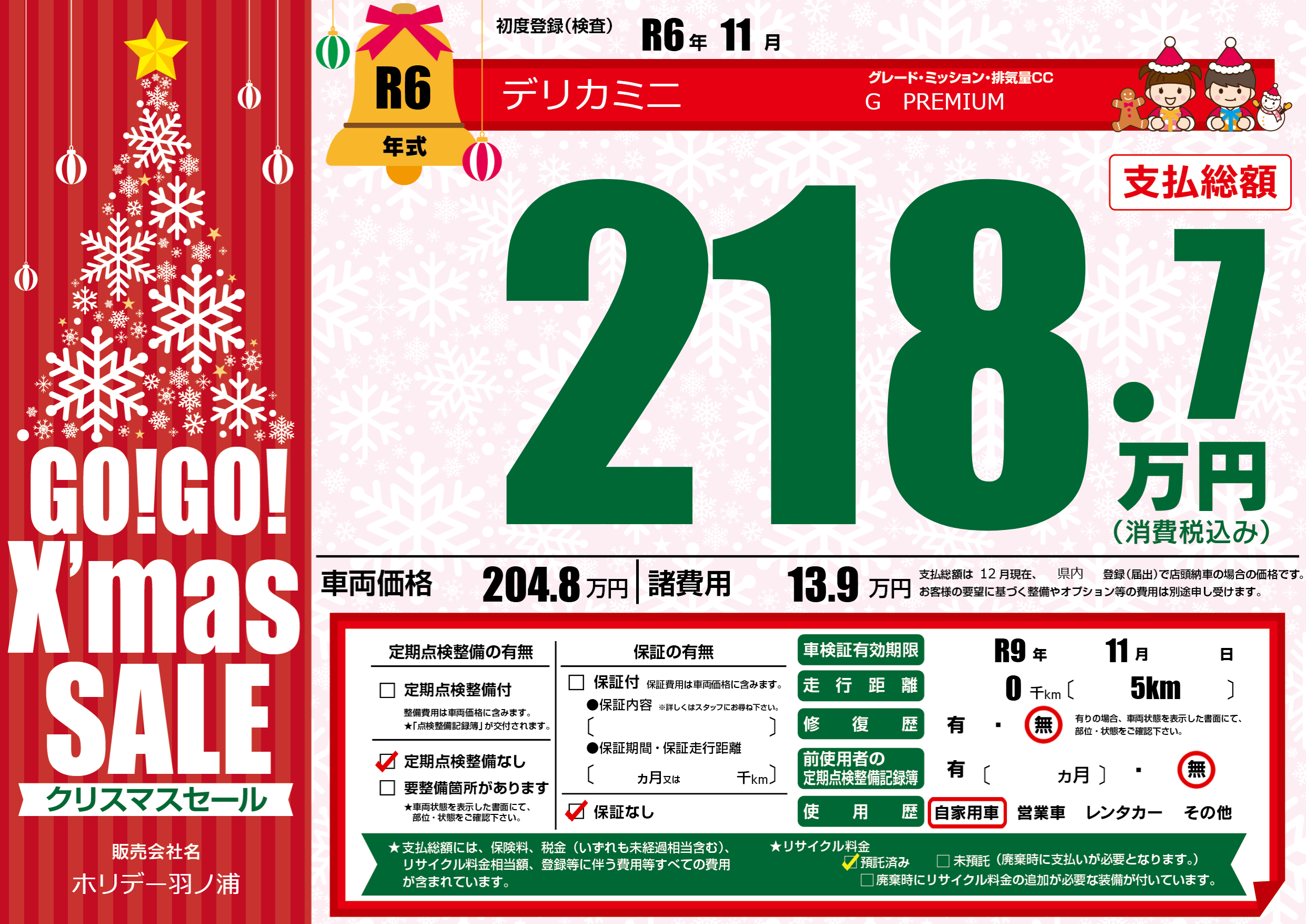 | 定期点検整備 | 定期点検整備なし | ||