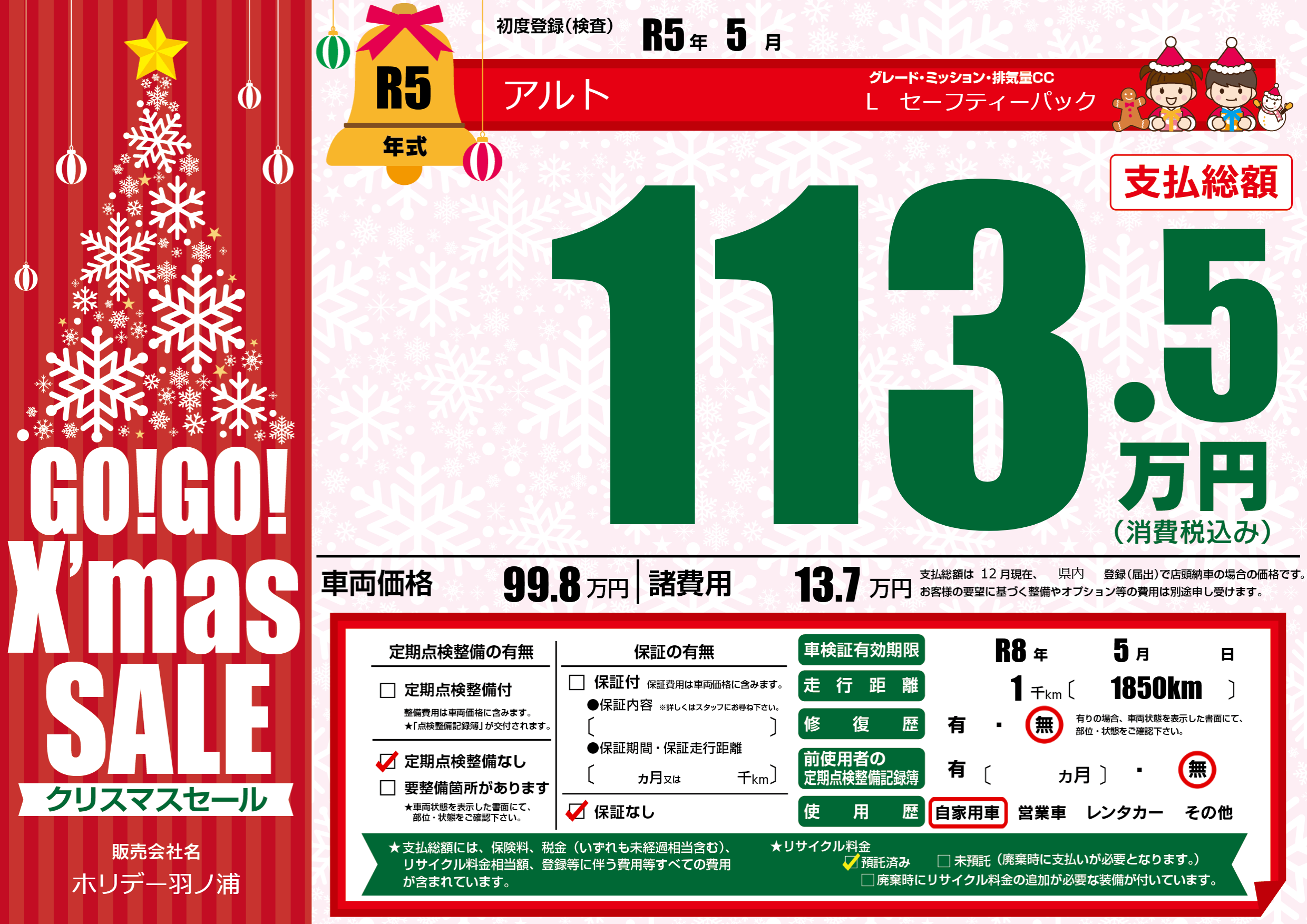 なし | 車検制限 | R8年5月---月 |