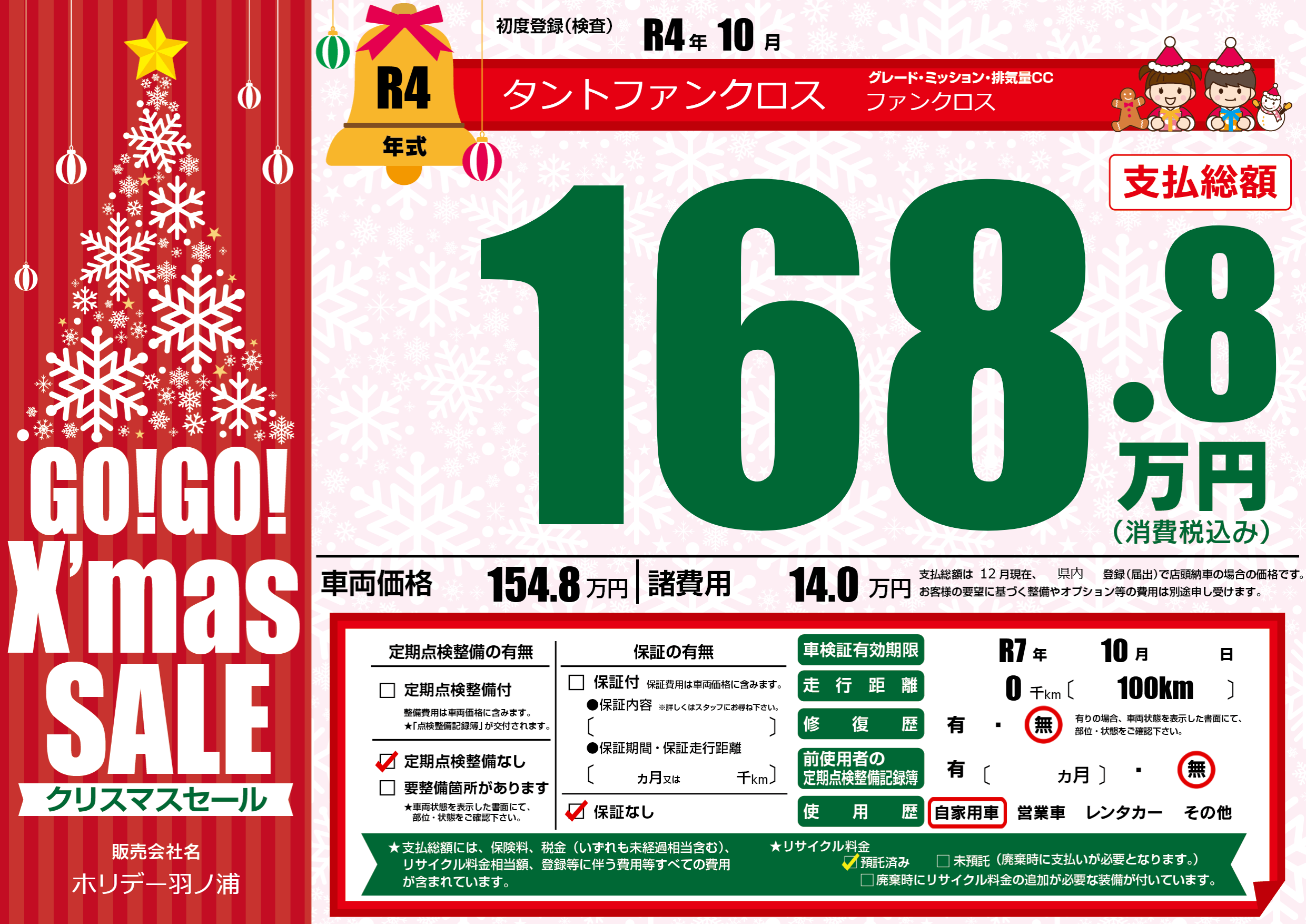 | 車名 | タントファンクロス | グレード ミッション 排気量 |