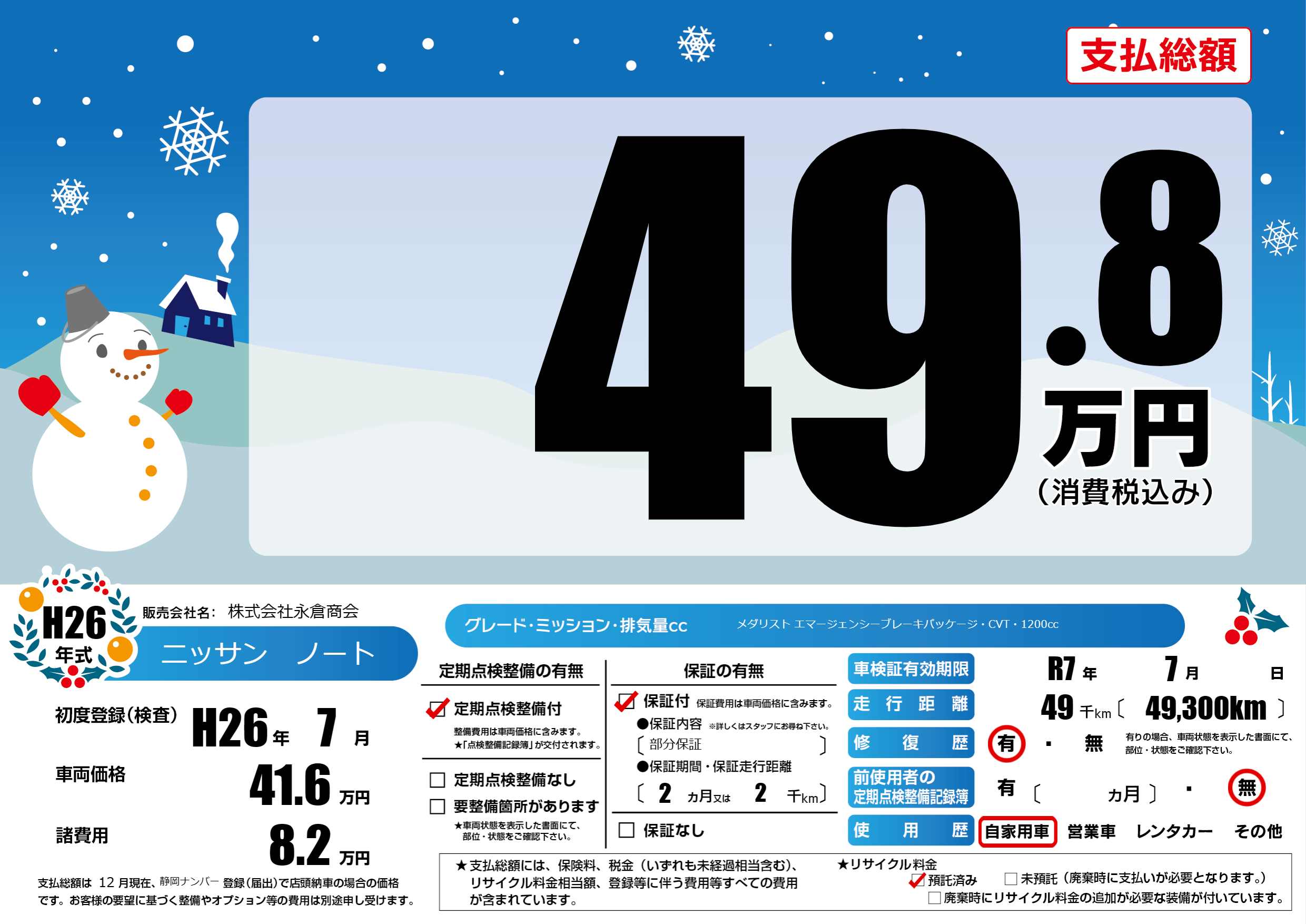 | 走行キロ | 4.9万km | 初年度登録 | H26年7月 |