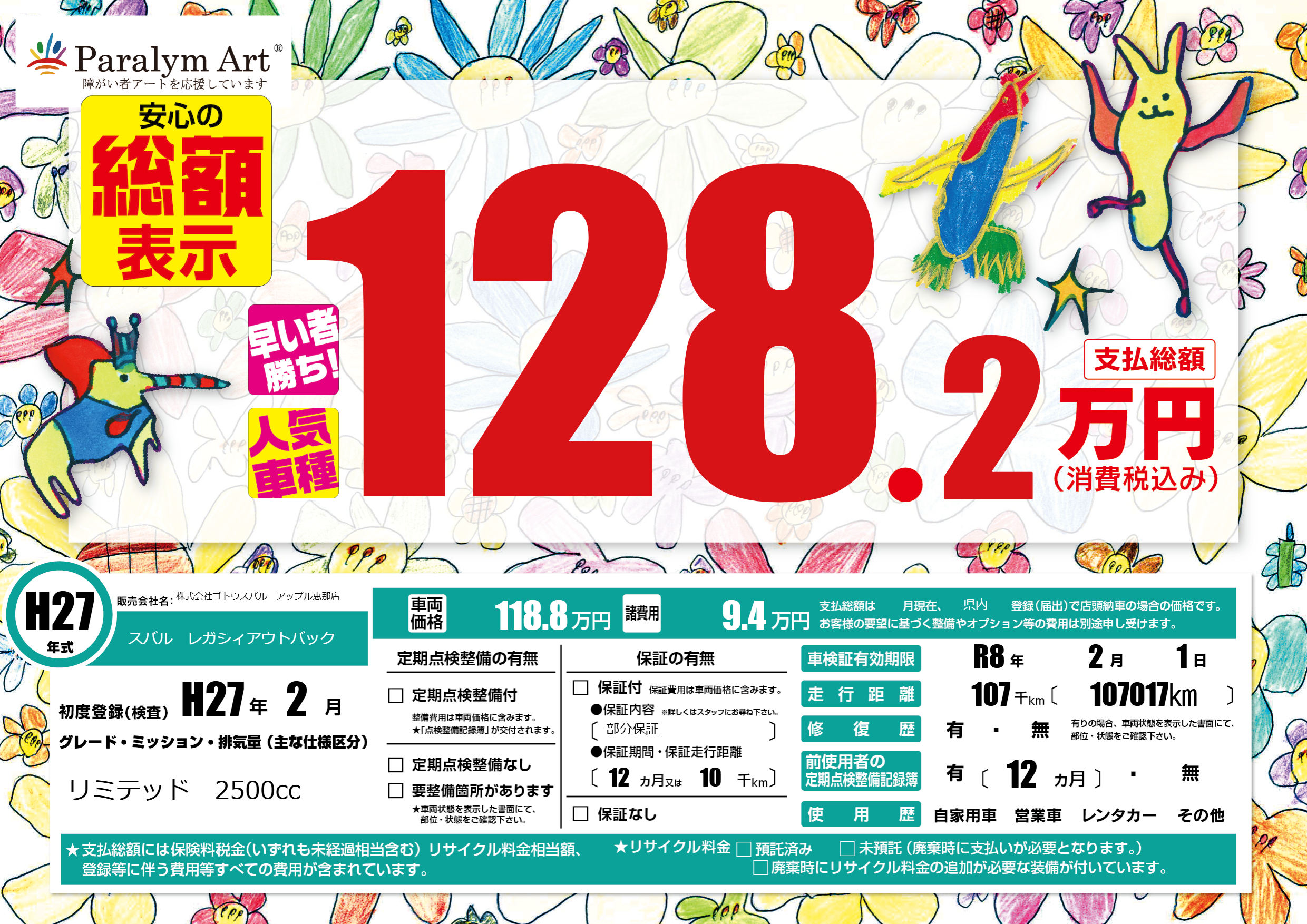 | 車名 | スバル レガシィアウトバック | グレード ミッション 排気量 |