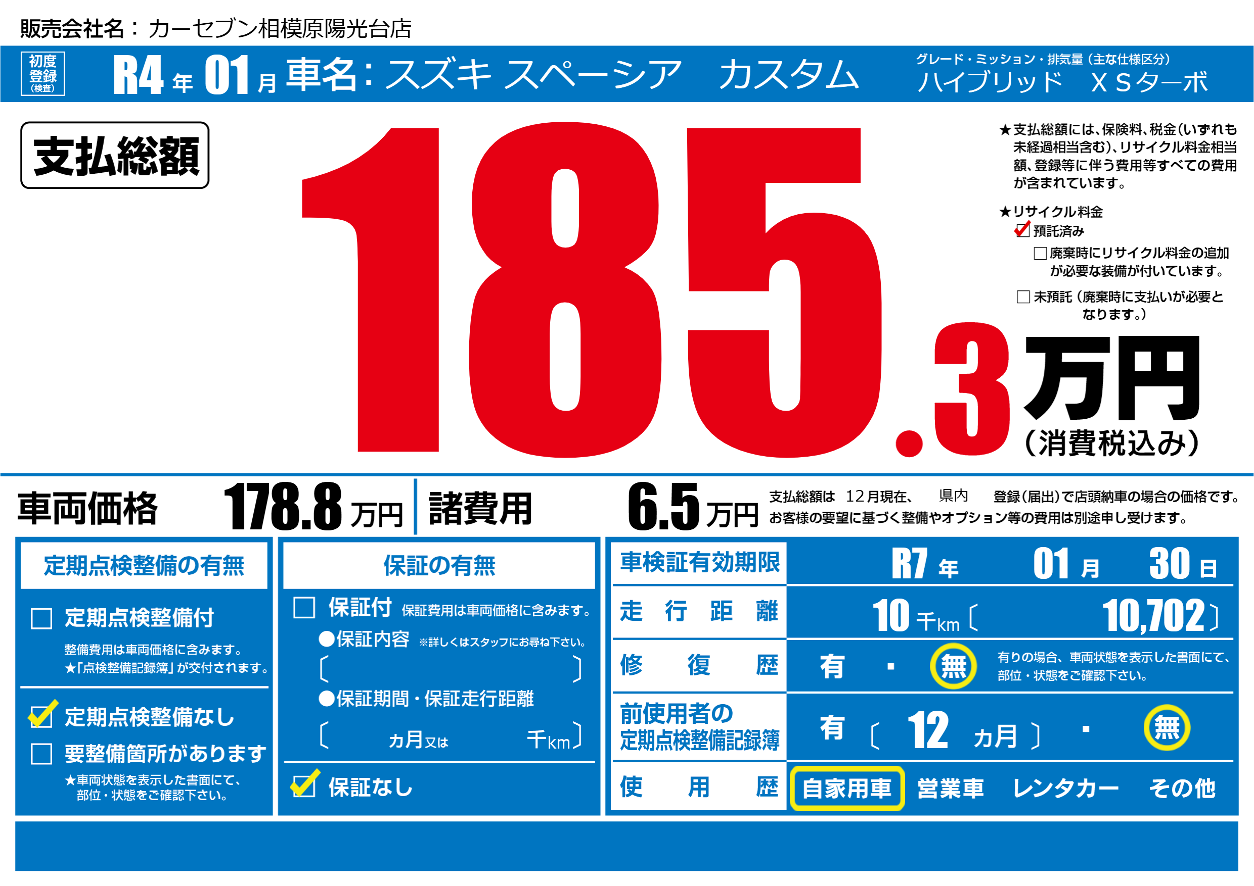 なし | 車検制限 | R7年01月30月 |