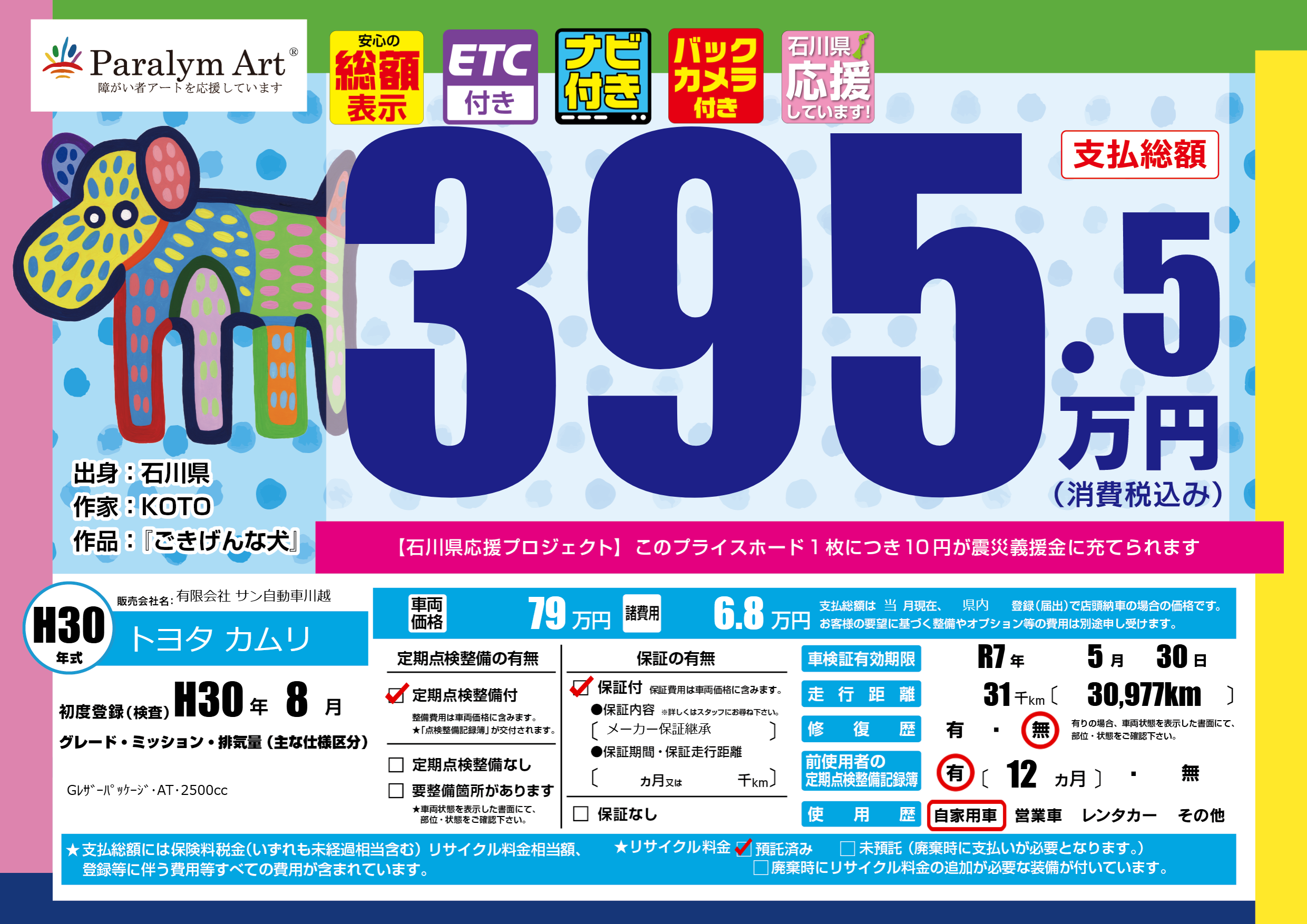 | 車名 | トヨタ カムリ | グレード ミッション 排気量 |