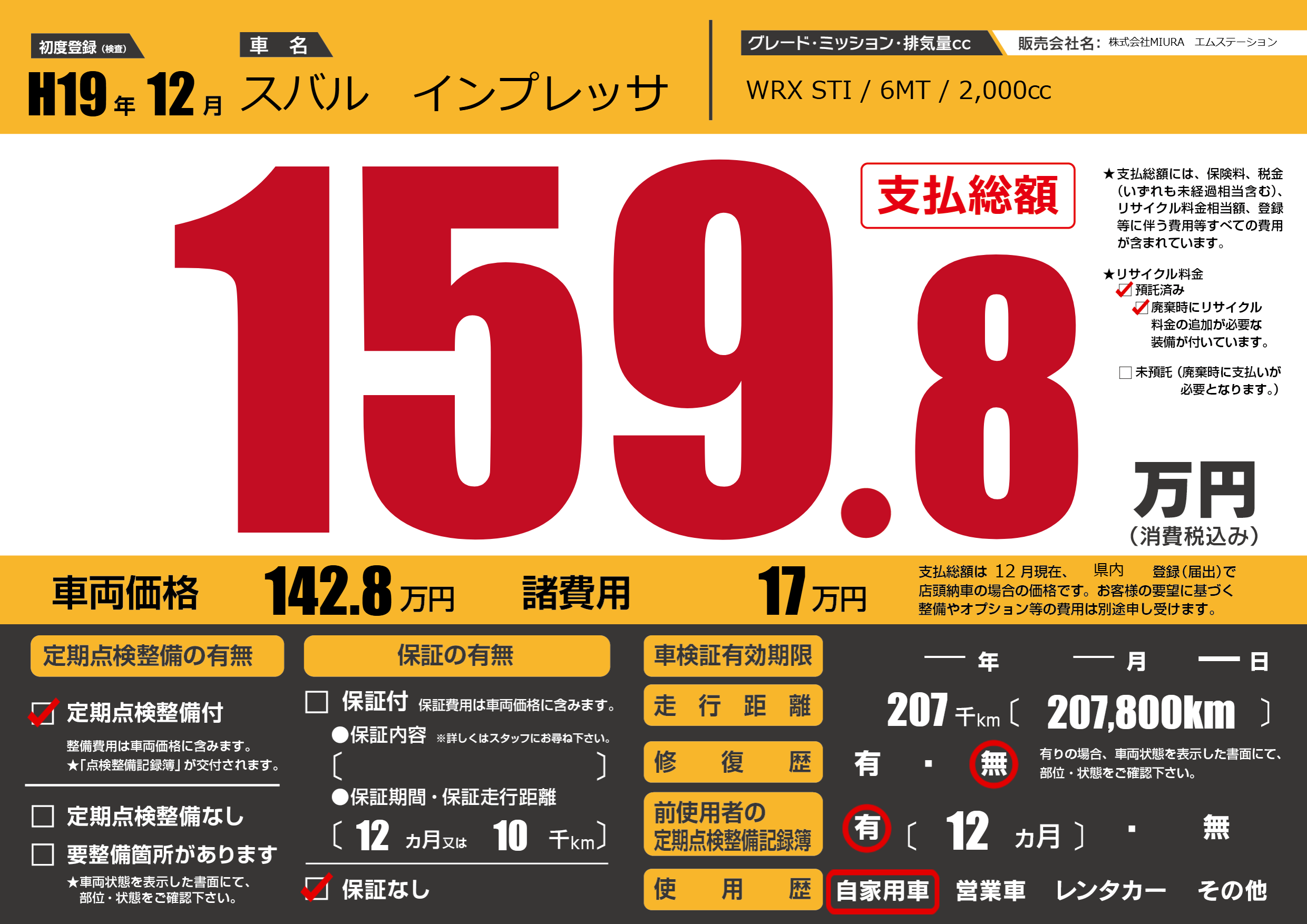 WRX STI / 6MT / 2,000㏄ |