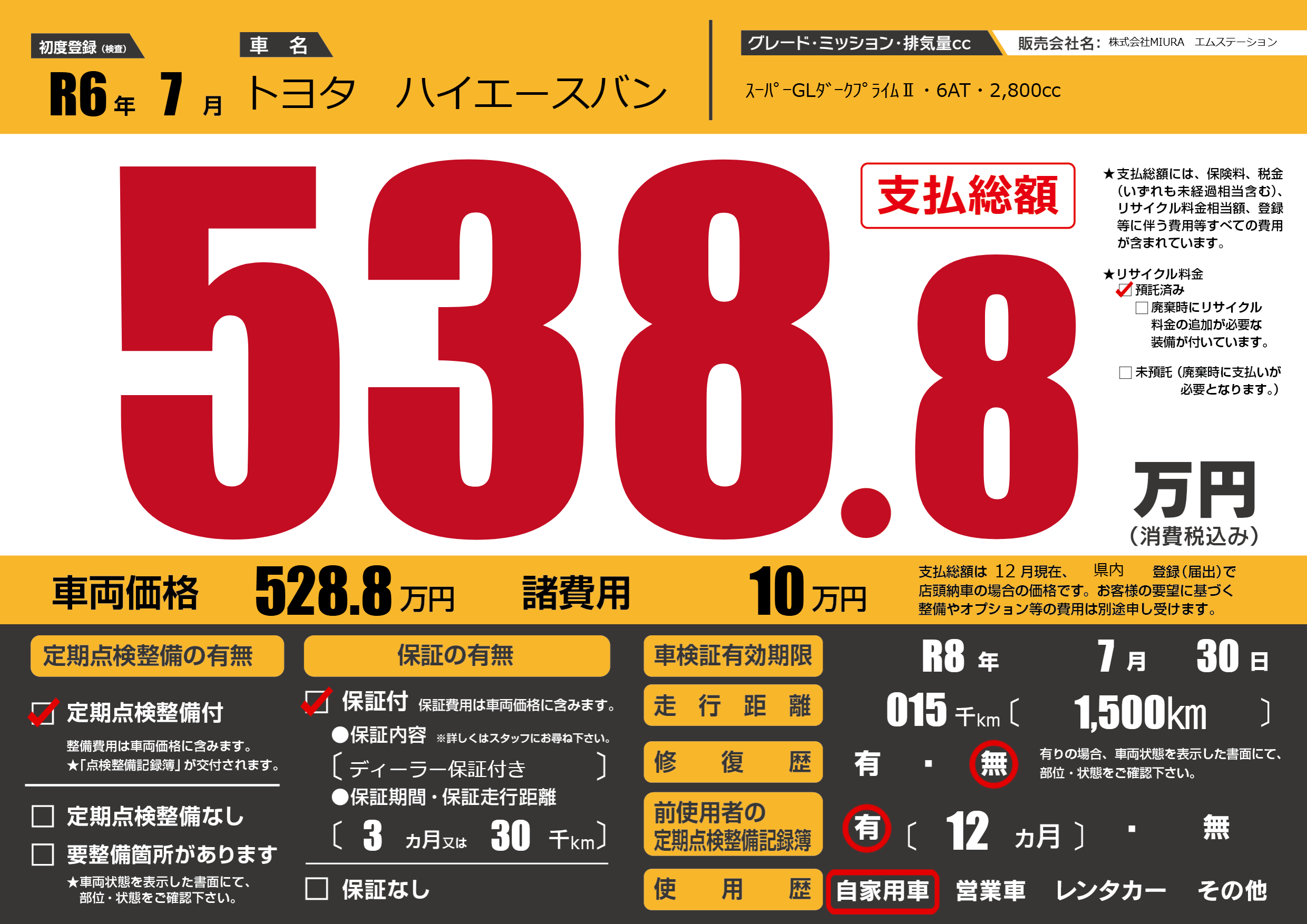 | 車検制限 | R8年 7月 30日 | ||
