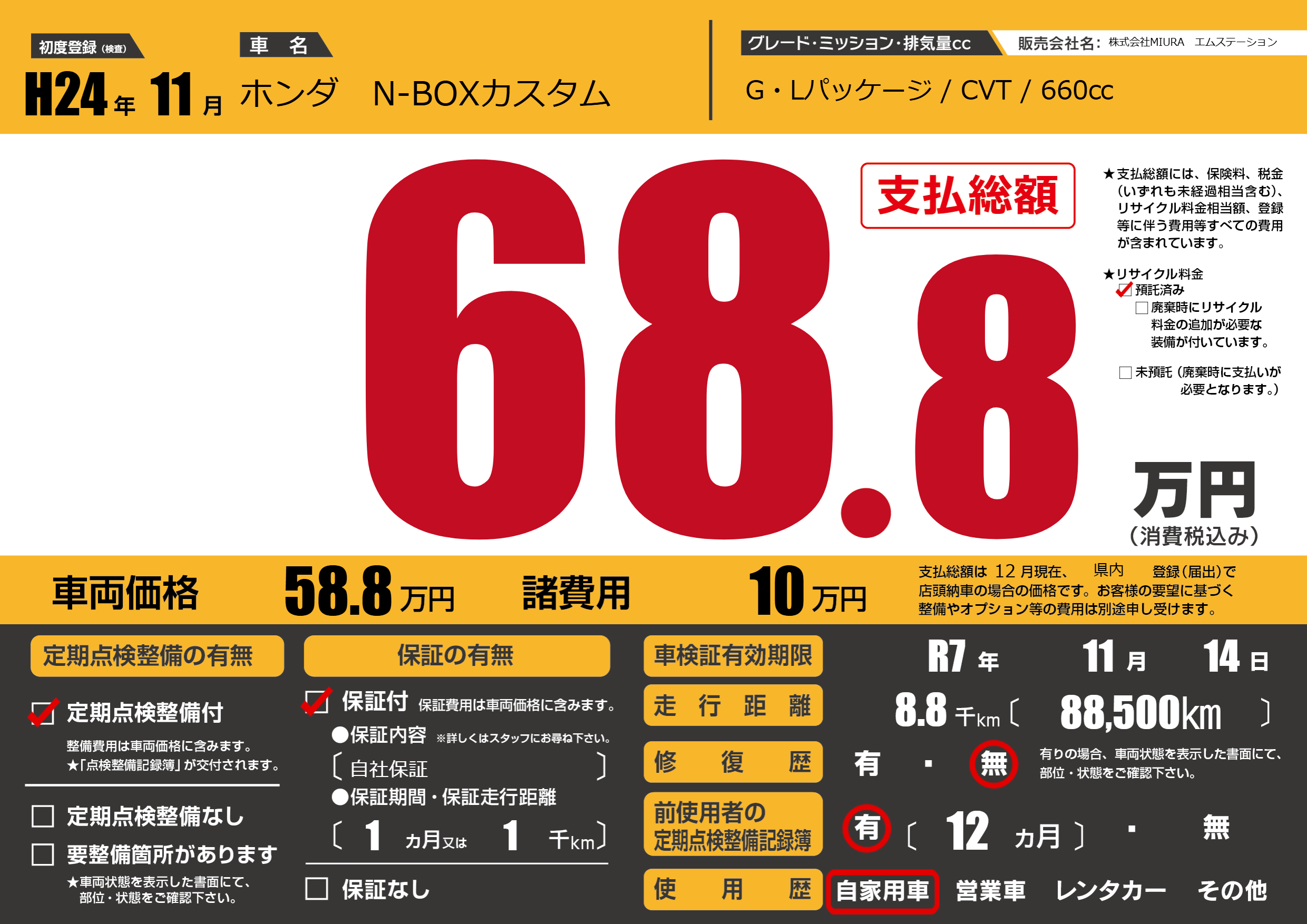 なし | 車検制限 | R7年11月14月 |