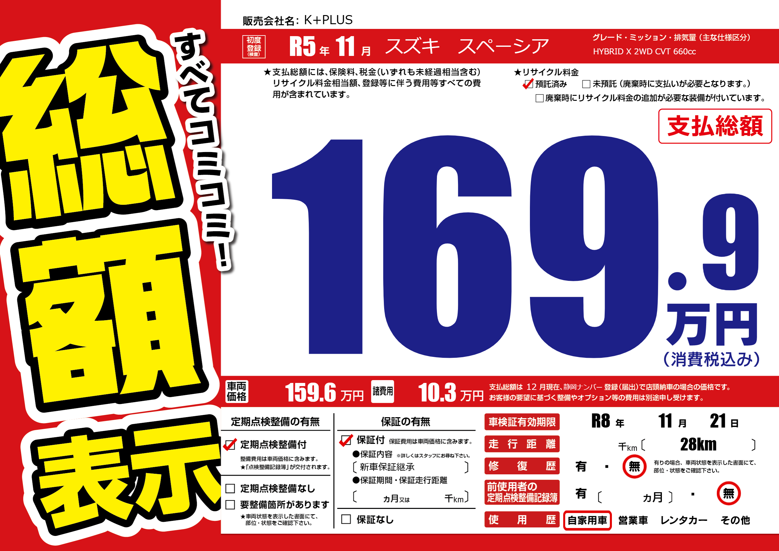 | 走行キロ | - | 初年度登録 | R5年11月 |