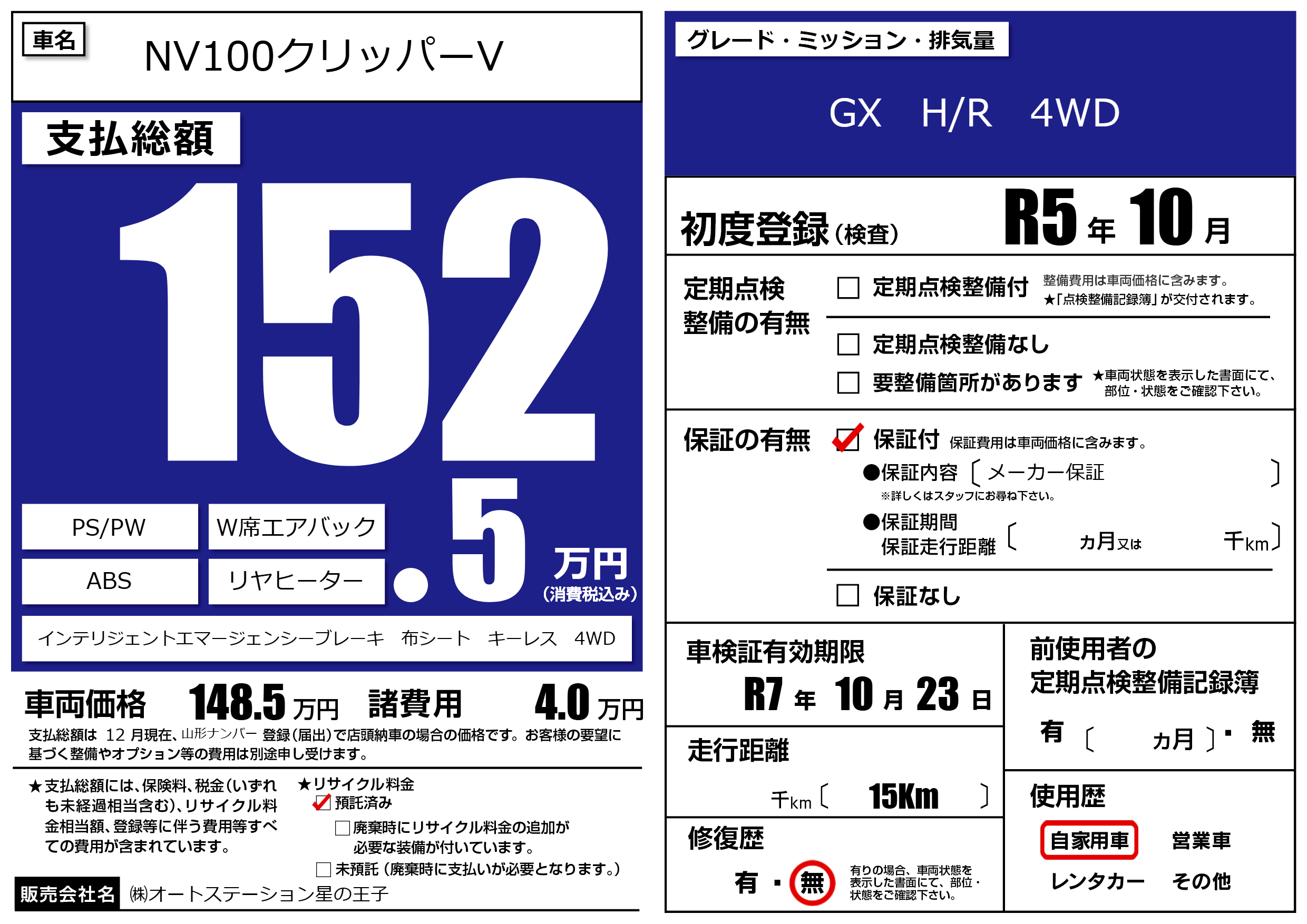 | 走行キロ | - | 初年度登録 | R5年10月 |