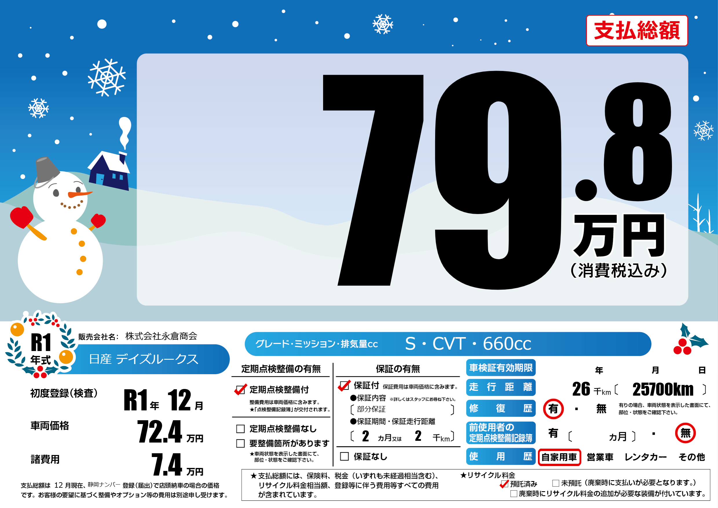 | 定期点検整備 | 定期点検整備あり | ||