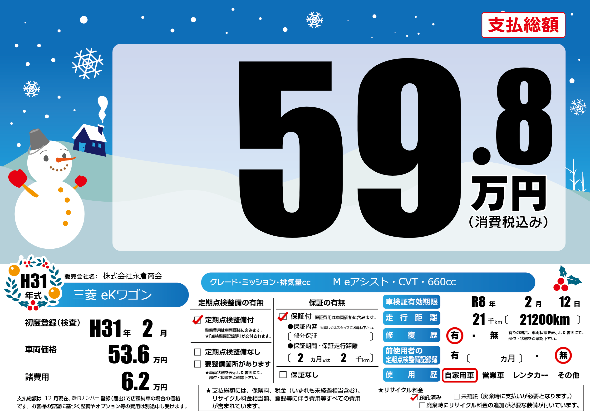 | 車名 | 三菱 eKワゴン | グレード ミッション 排気量 |