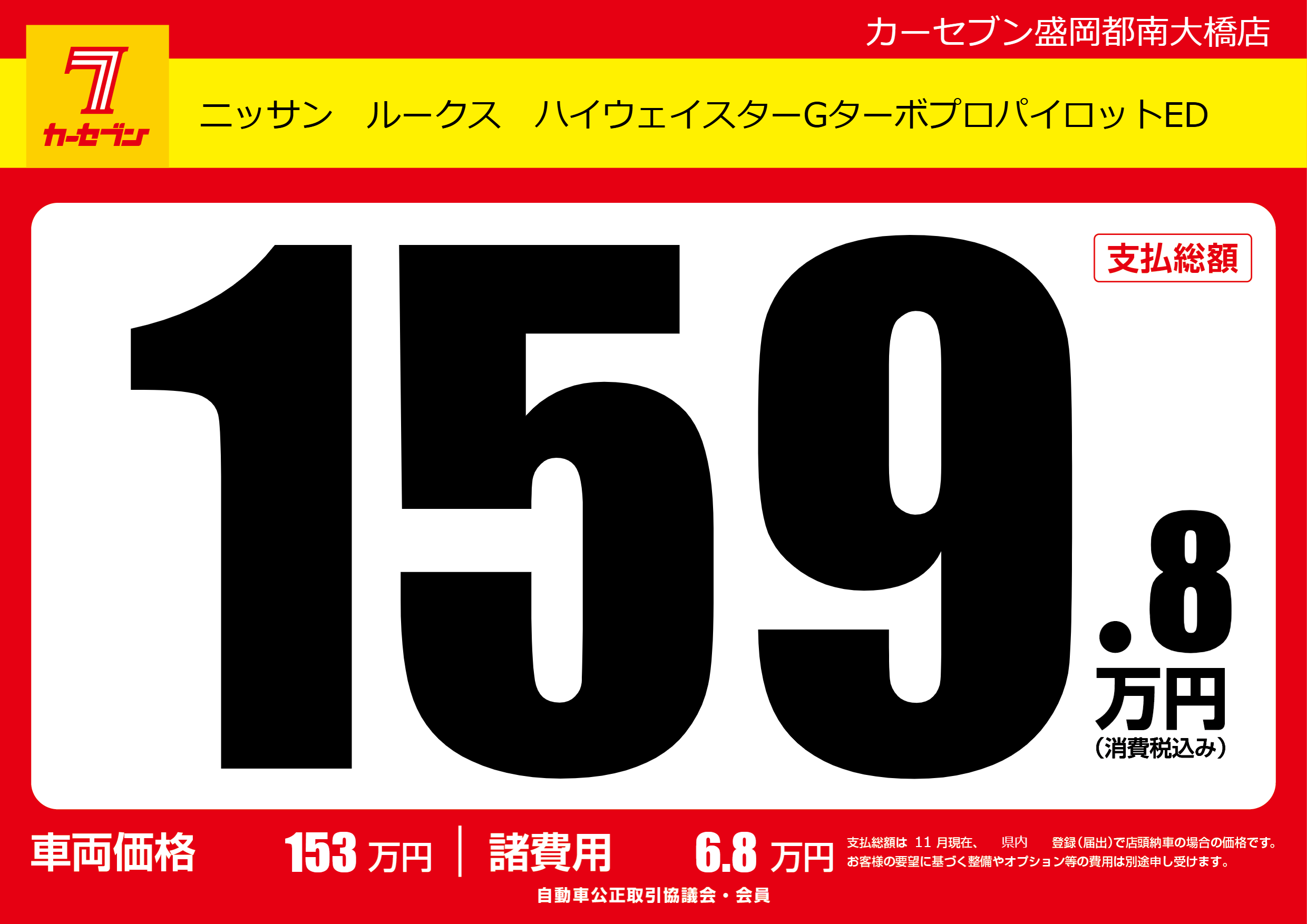 | 車名 | ニッサン ルークス ハイウェイスターGターボプロパイロットED | グレード ミッション 排気量 |
