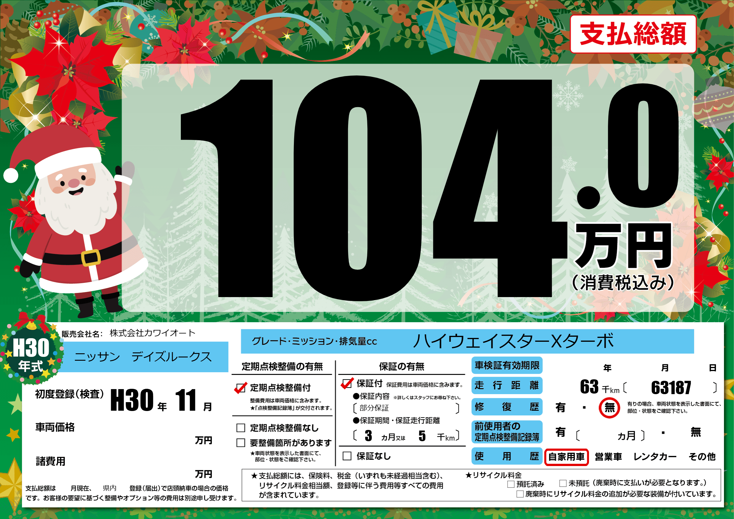 | 車名 | ニッサン デイズルークス | グレード ミッション 排気量 |