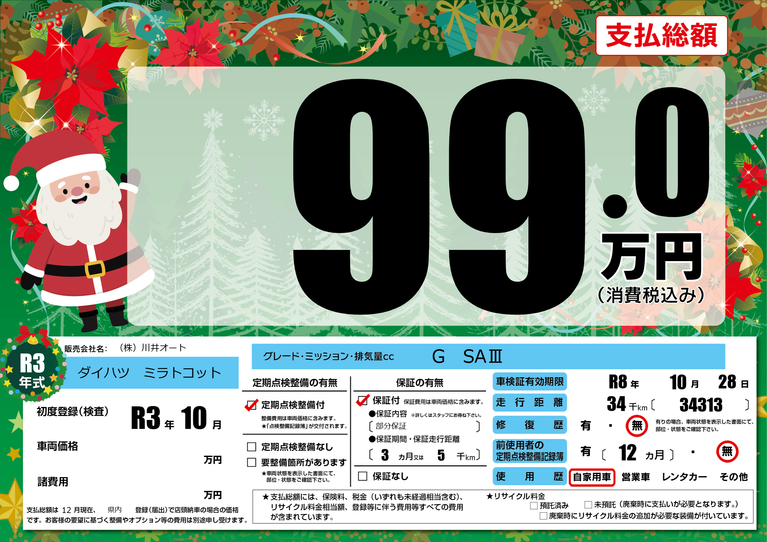 なし | 車検制限 | R8年10月28月 |