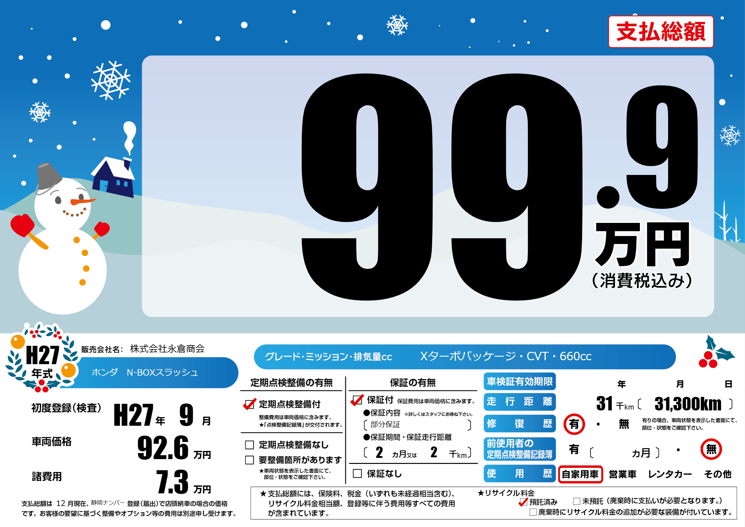 | 車名 | ホンダ N-BOXスラッシュ | グレード ミッション 排気量 |
