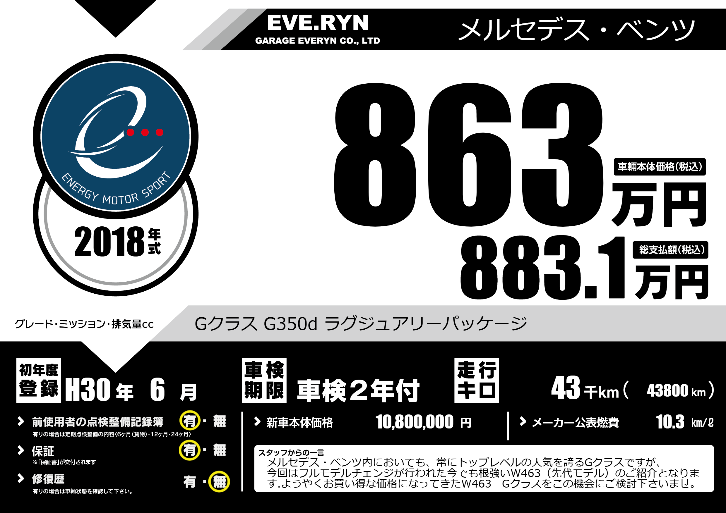 | 初年度登録 | H30年6月 | ||