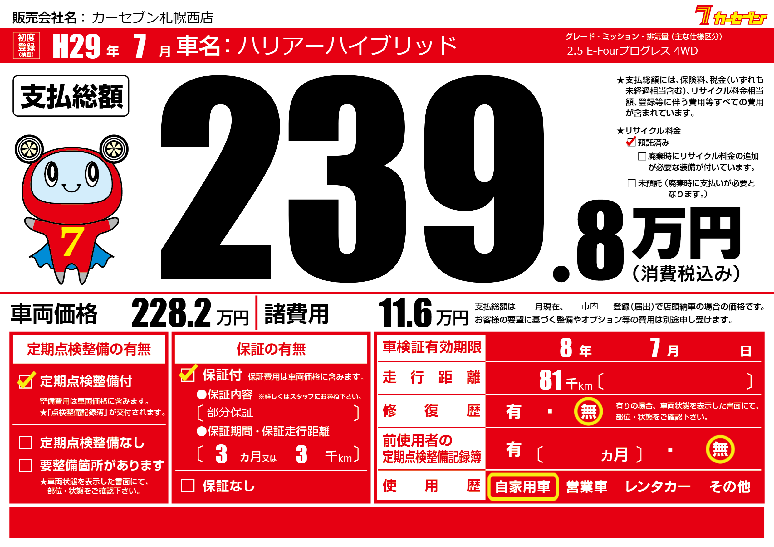 | 走行キロ | 8.1万km | ||