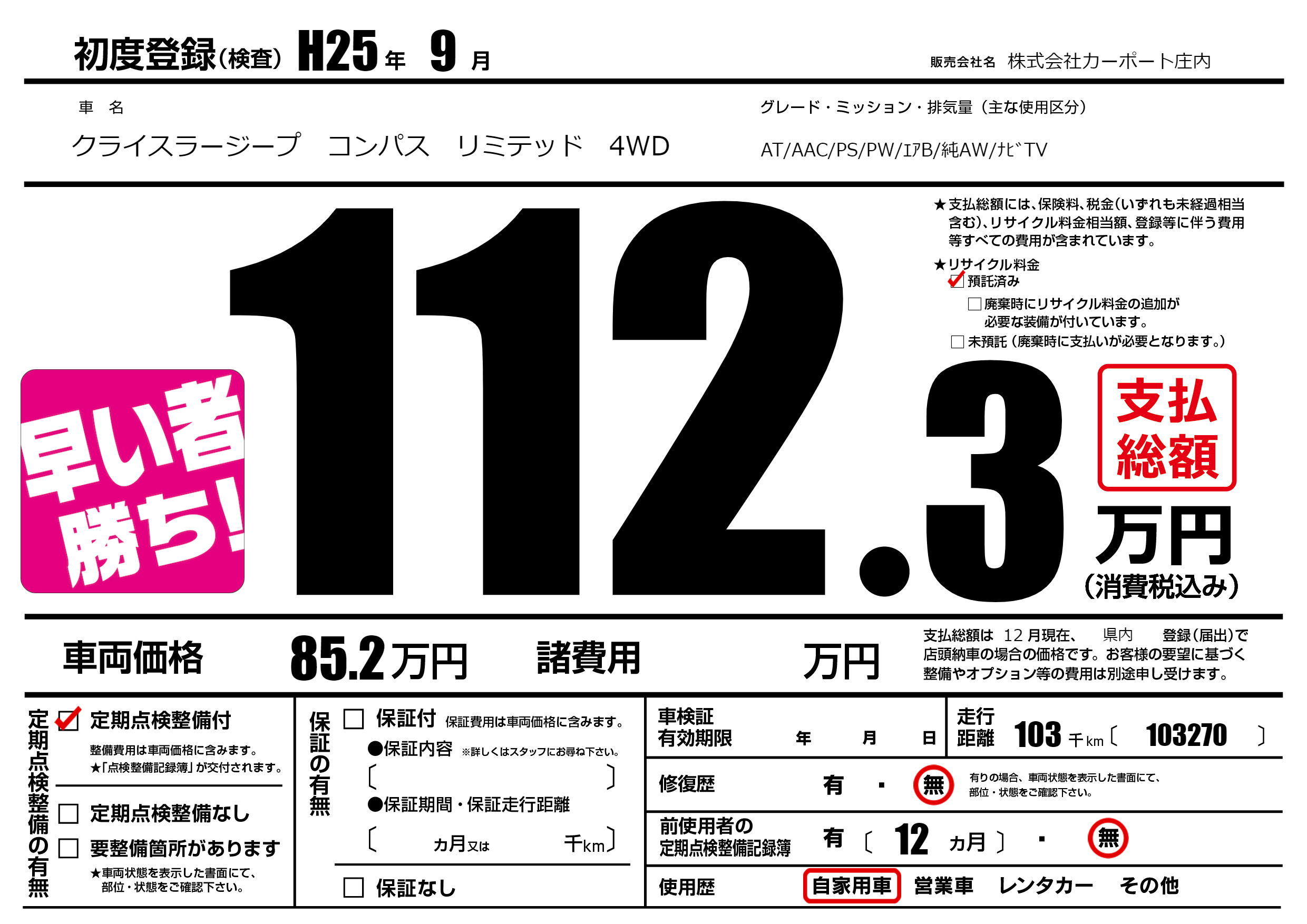 | 定期点検整備 | 定期点検整備あり | ||