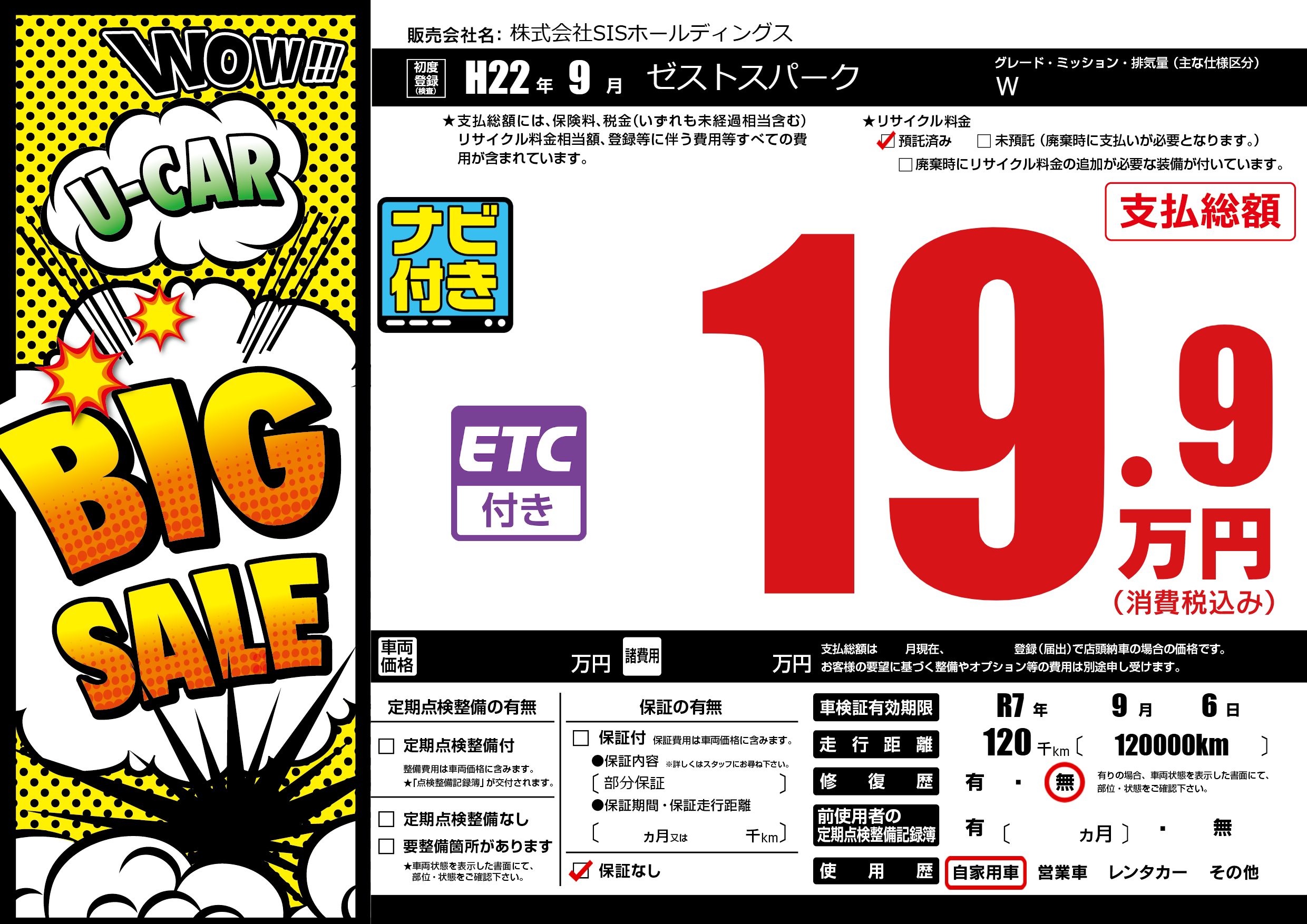 | 車検制限 | R7年 9月 6日 | ||