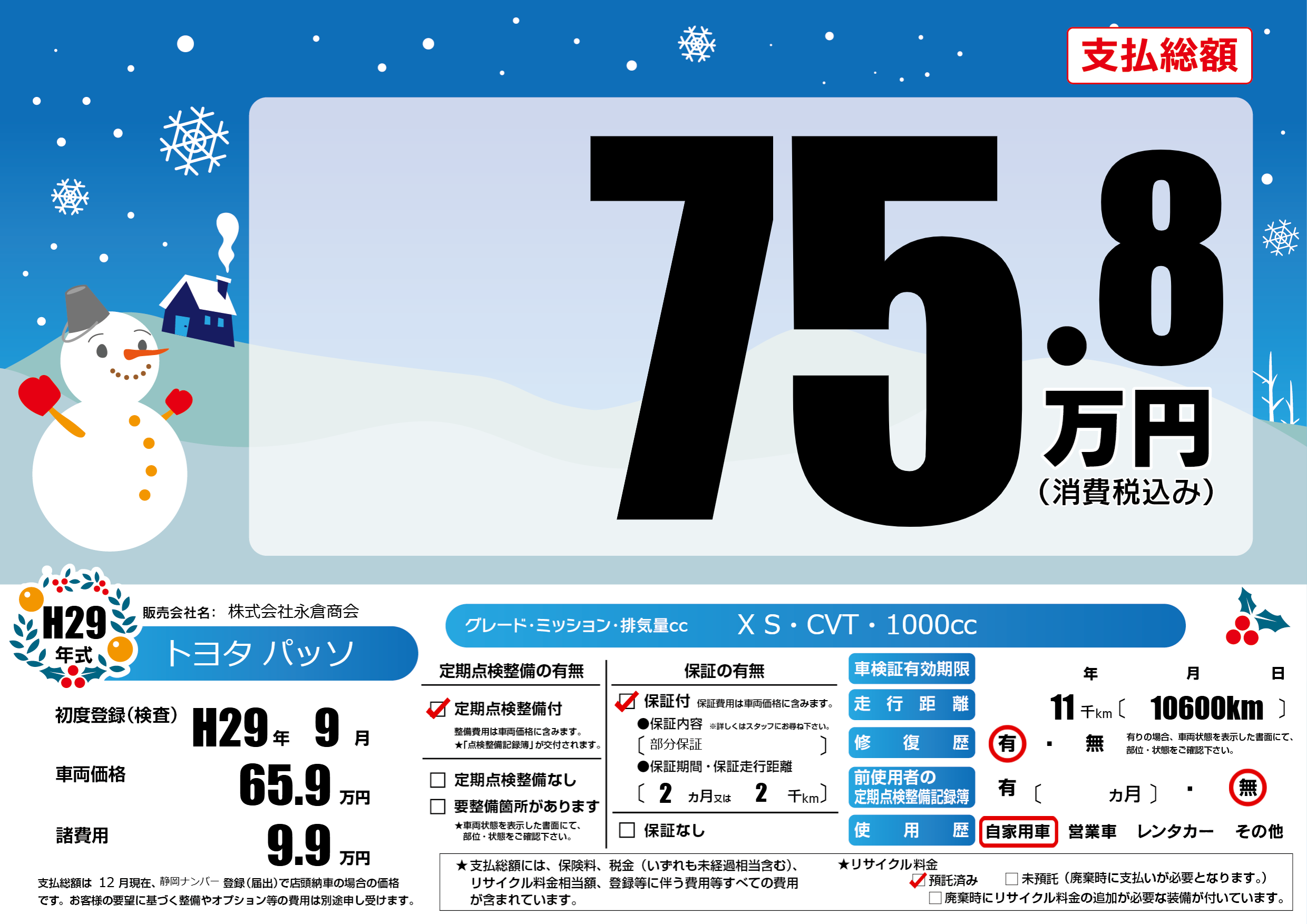 | 車名 | トヨタ パッソ | グレード ミッション 排気量 |