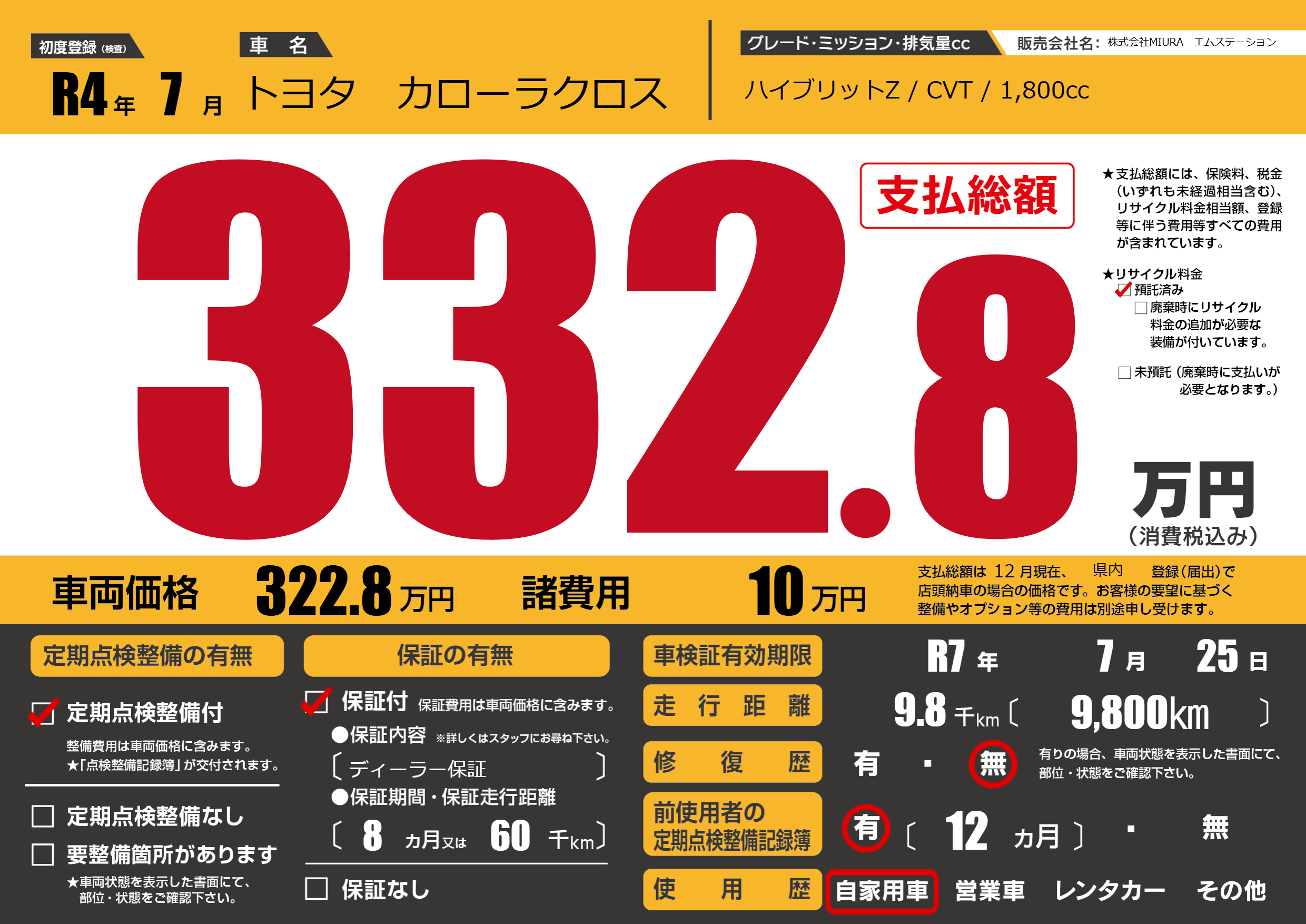 なし | 車検制限 | R7年7月25月 |
