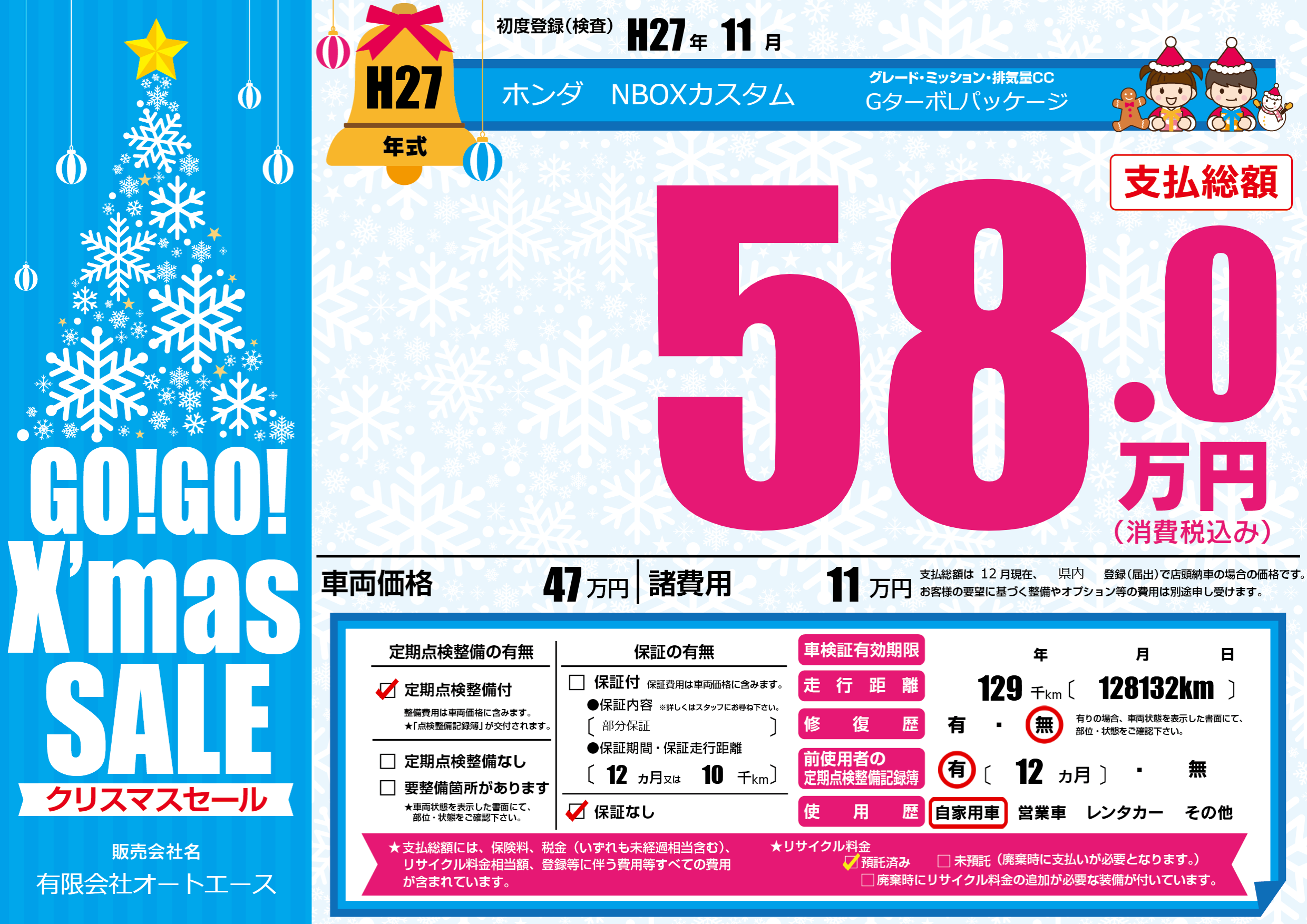 | 走行キロ | 12.9万km | ||