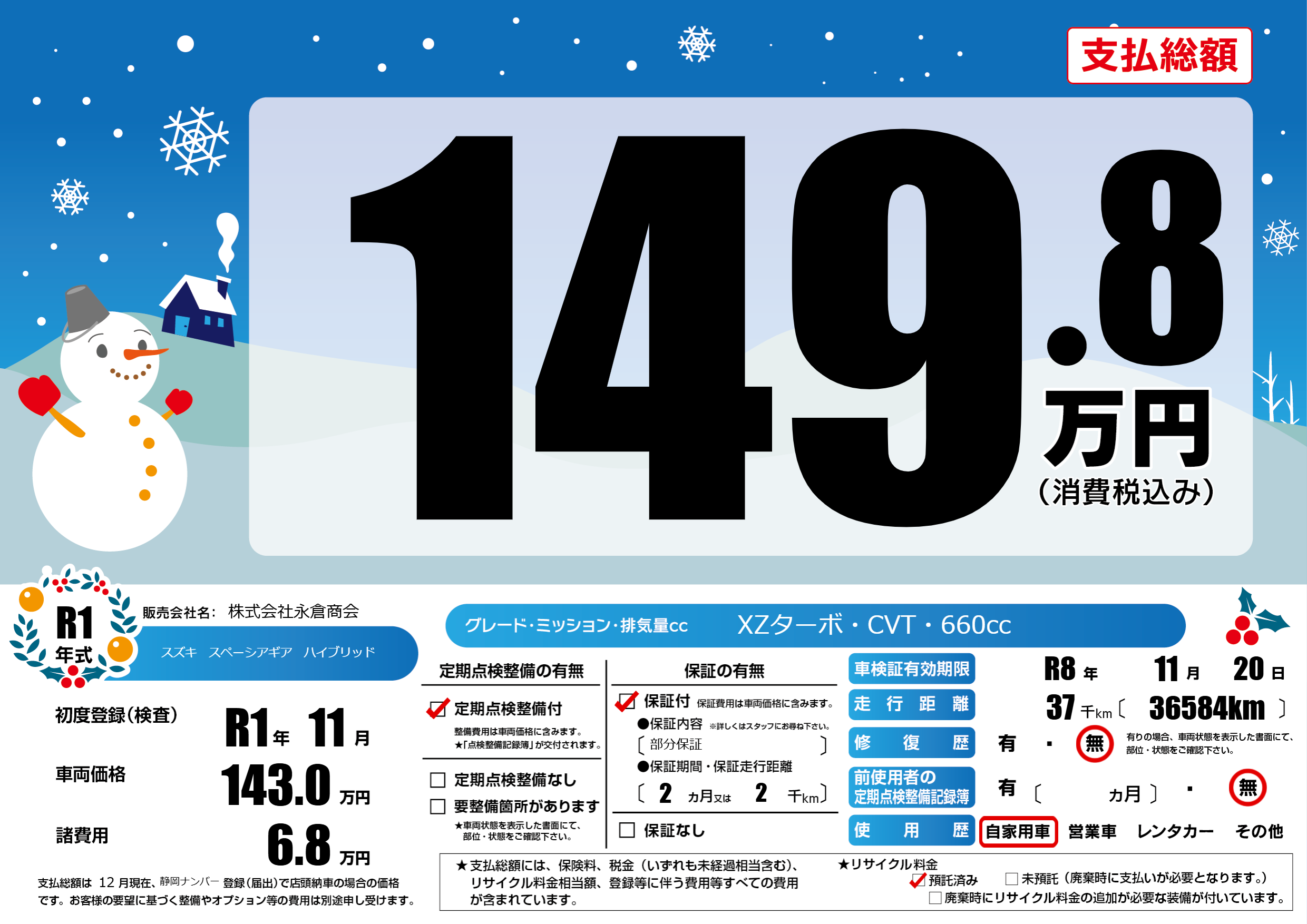 | 車検制限 | R8年 11月 20日 | ||