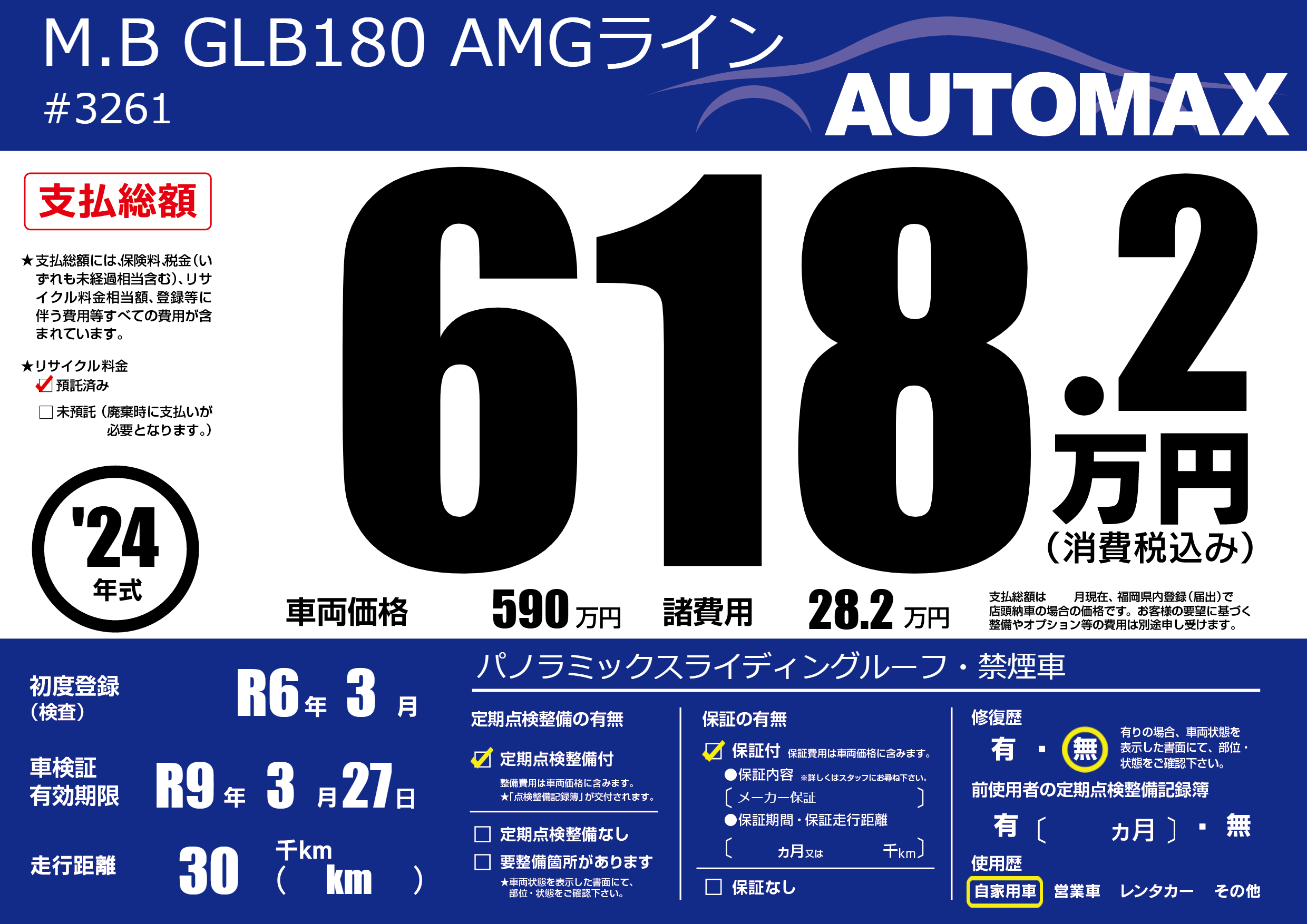 | 車名 | M.B GLB180 AMGライン | グレード ミッション 排気量 |