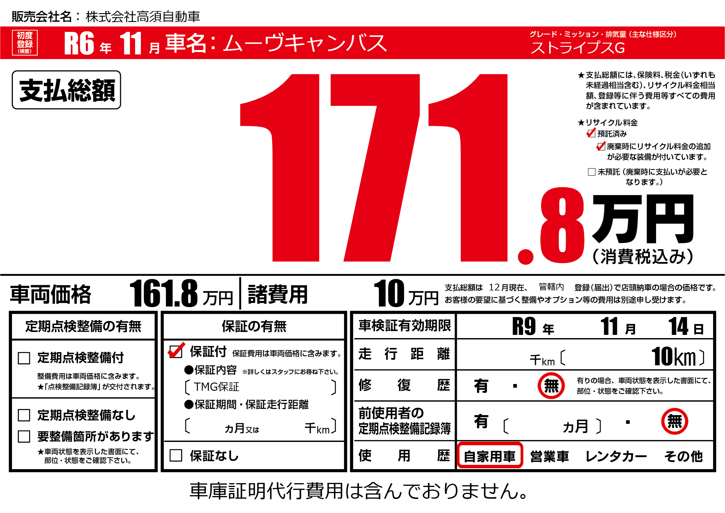 保証付き 保証内容(TMG保証) ---ヶ月または()千kmまで |