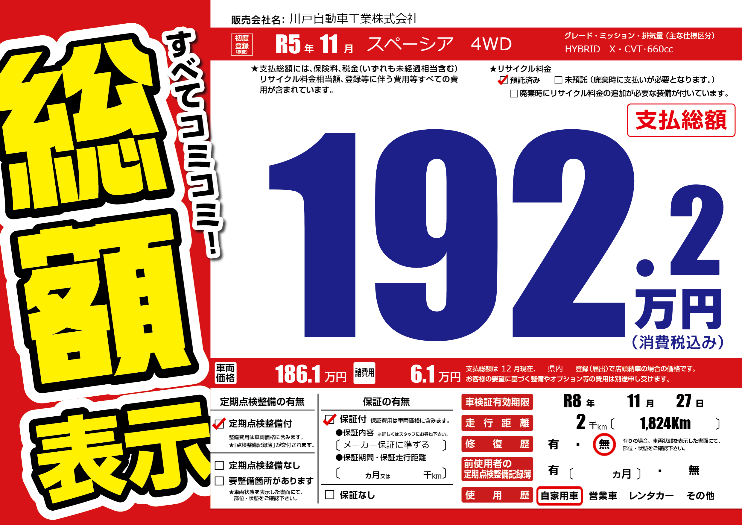 なし | 車検制限 | R8年11月27月 |