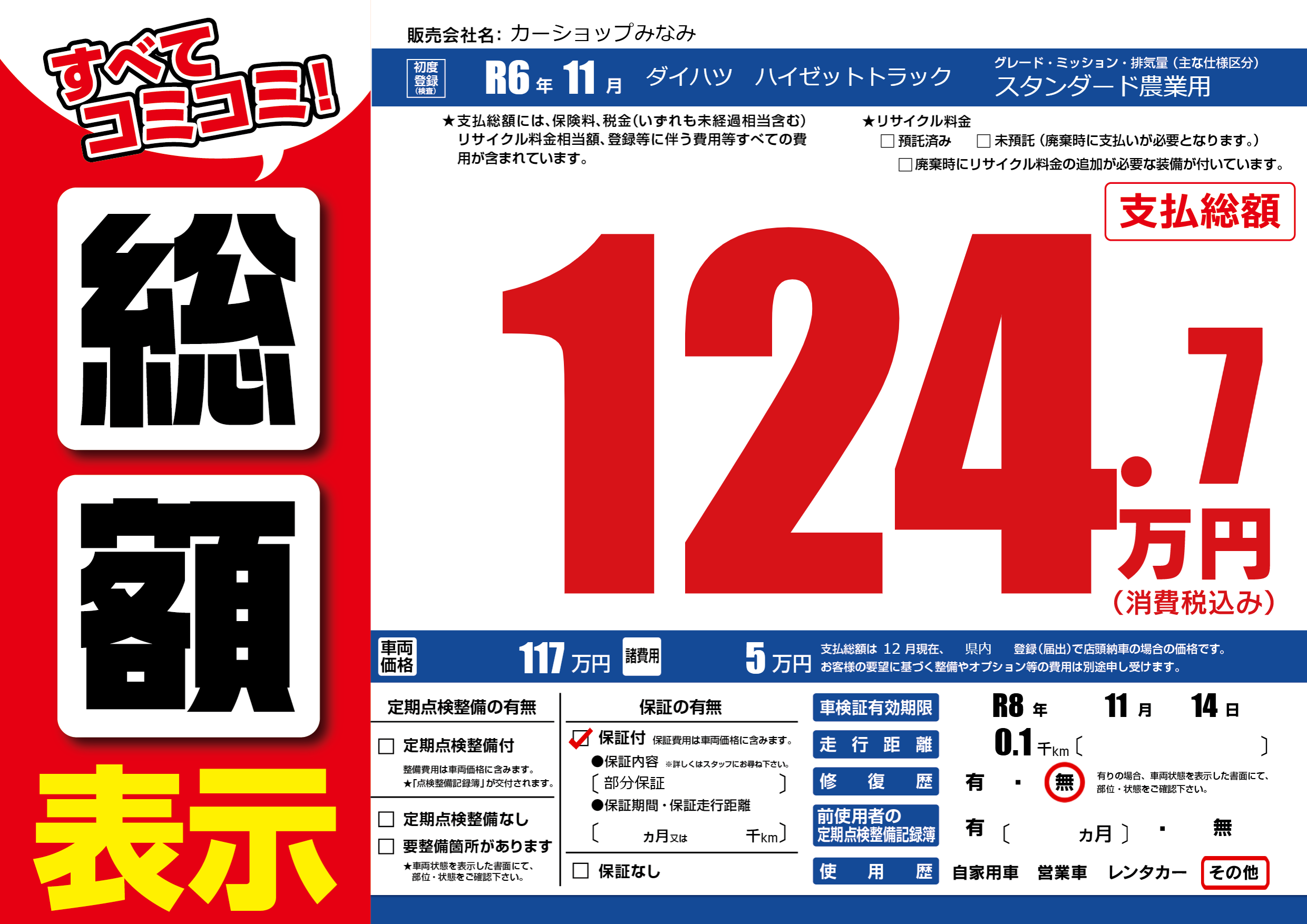 保証付き 保証内容(部分保証) ---ヶ月または()千kmまで |