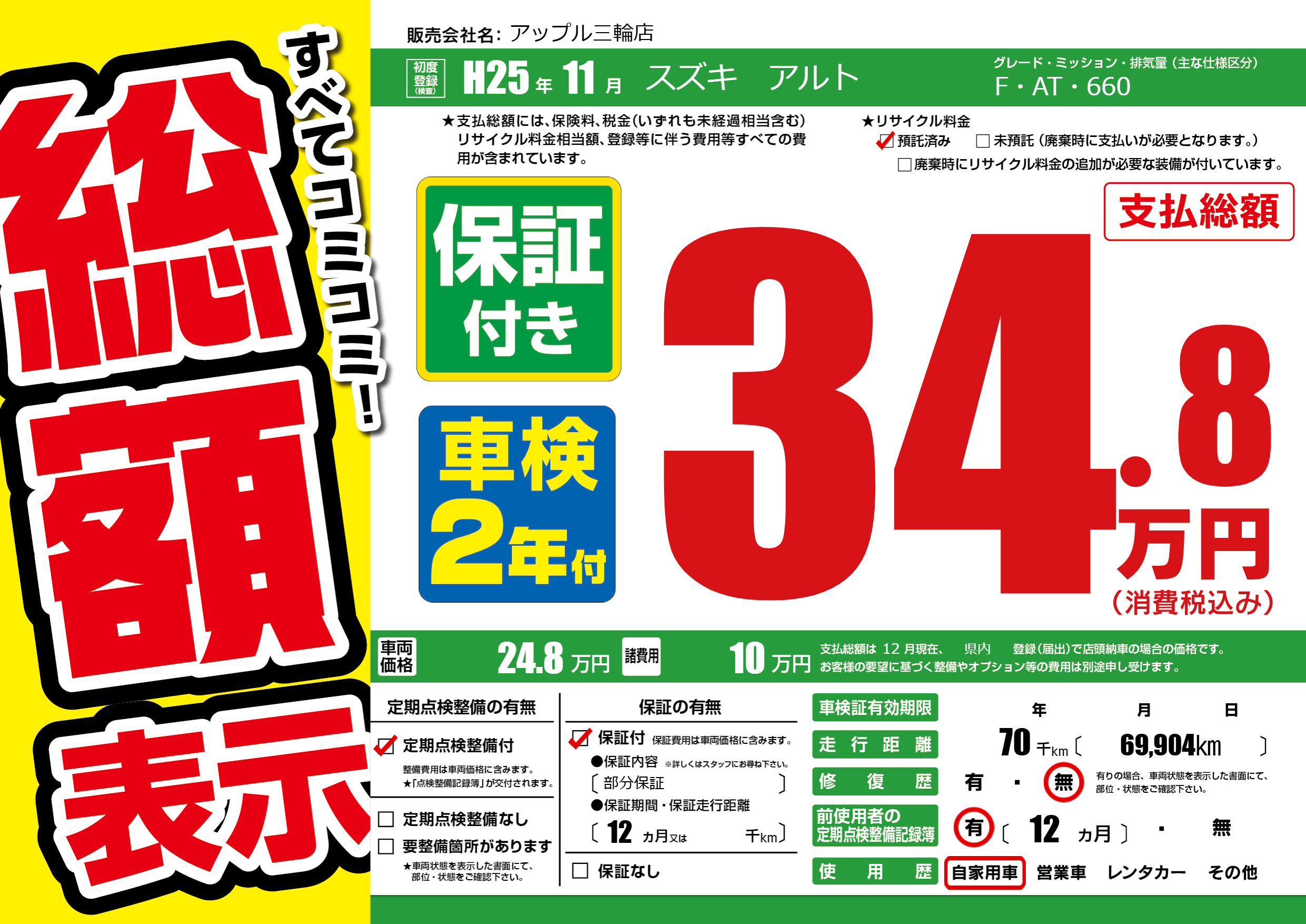 | 定期点検整備 | 定期点検整備あり | ||