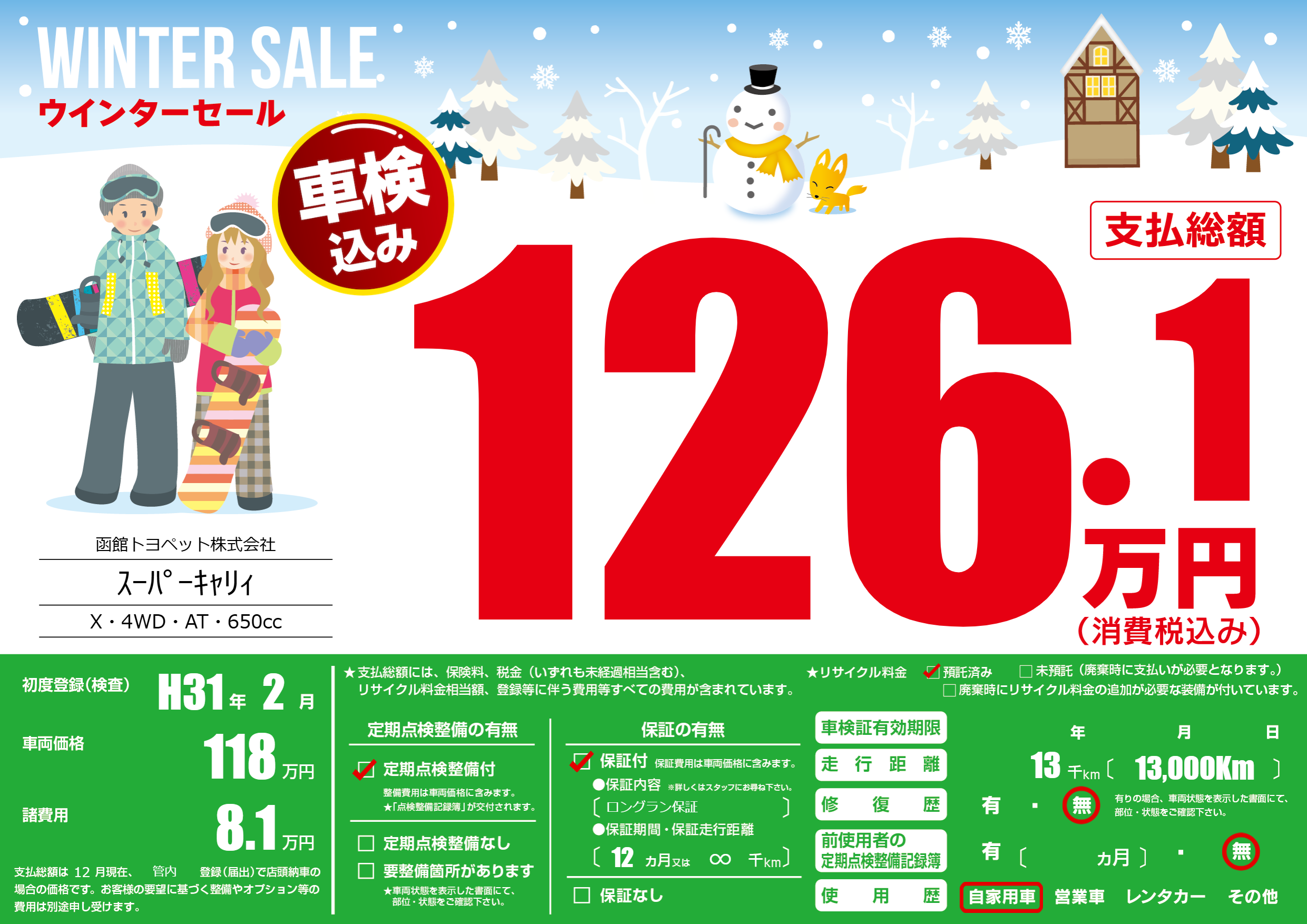 | 走行キロ | 1.3万km | 初年度登録 | H31年2月 |