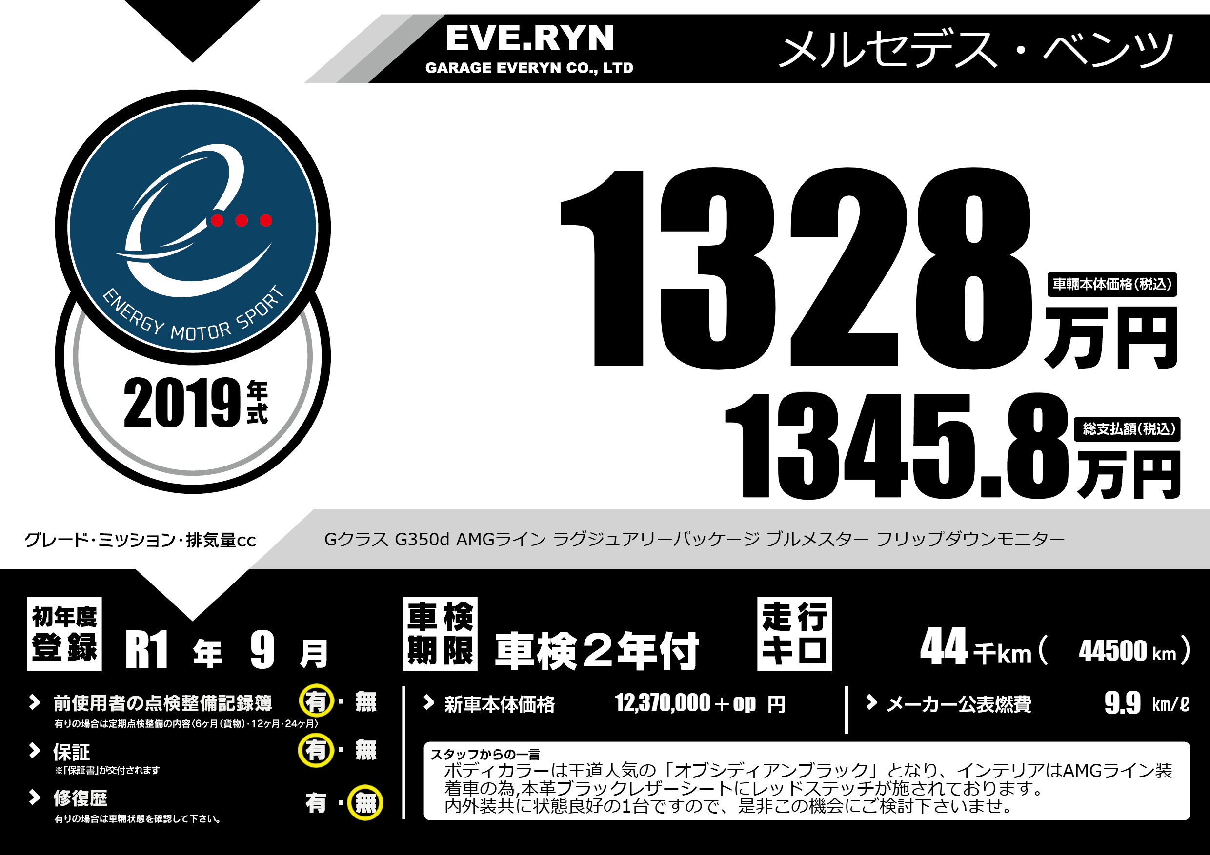 | 初年度登録 | R1年9月 | ||