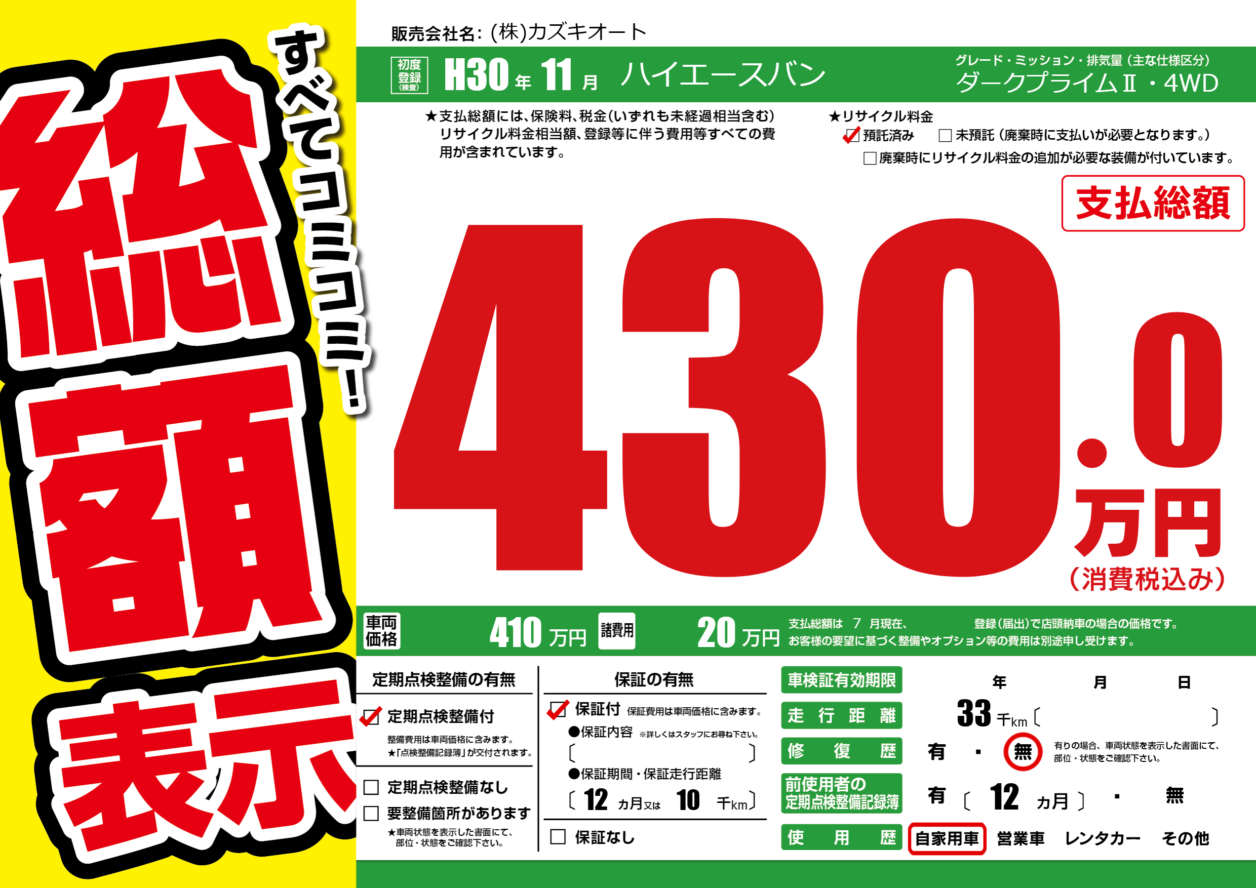 保証付き 保証内容(---) 12ヶ月または(10)千kmまで |