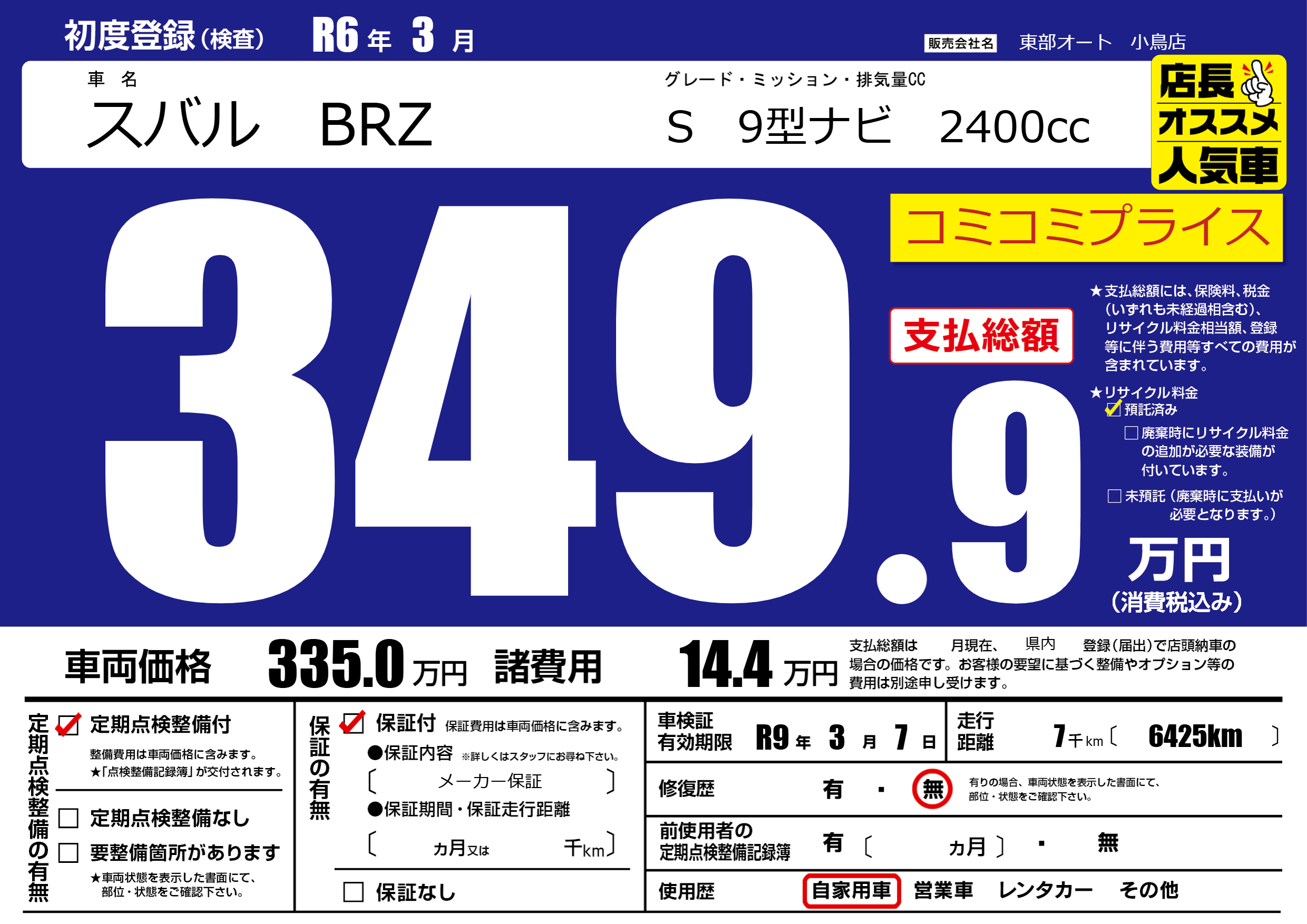 なし | 車検制限 | R9年3月7月 |