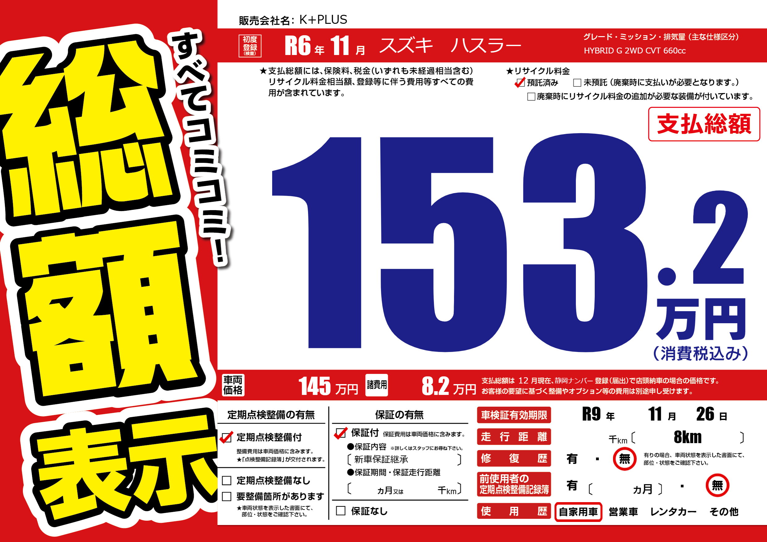 | 走行キロ | - | 初年度登録 | R6年11月 |