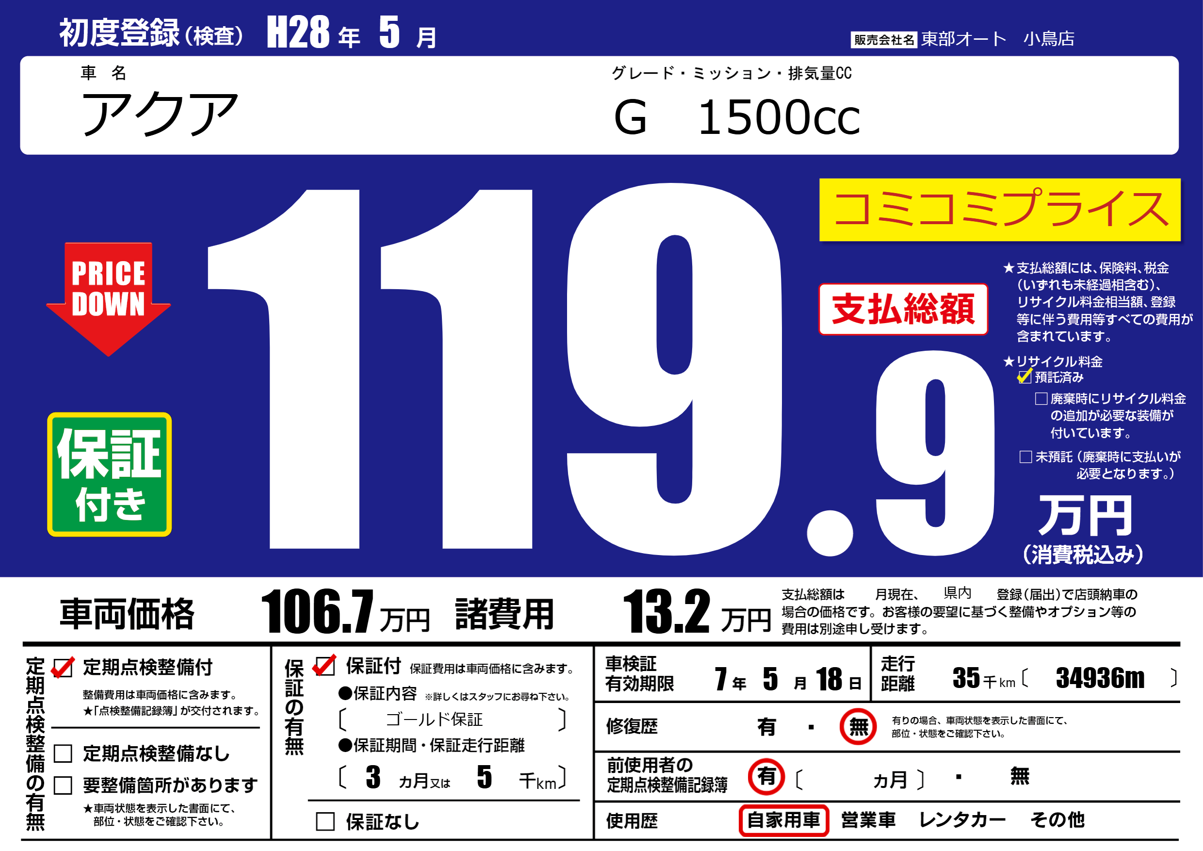 保証付き 保証内容( ゴールド保証) 3ヶ月または5千km |