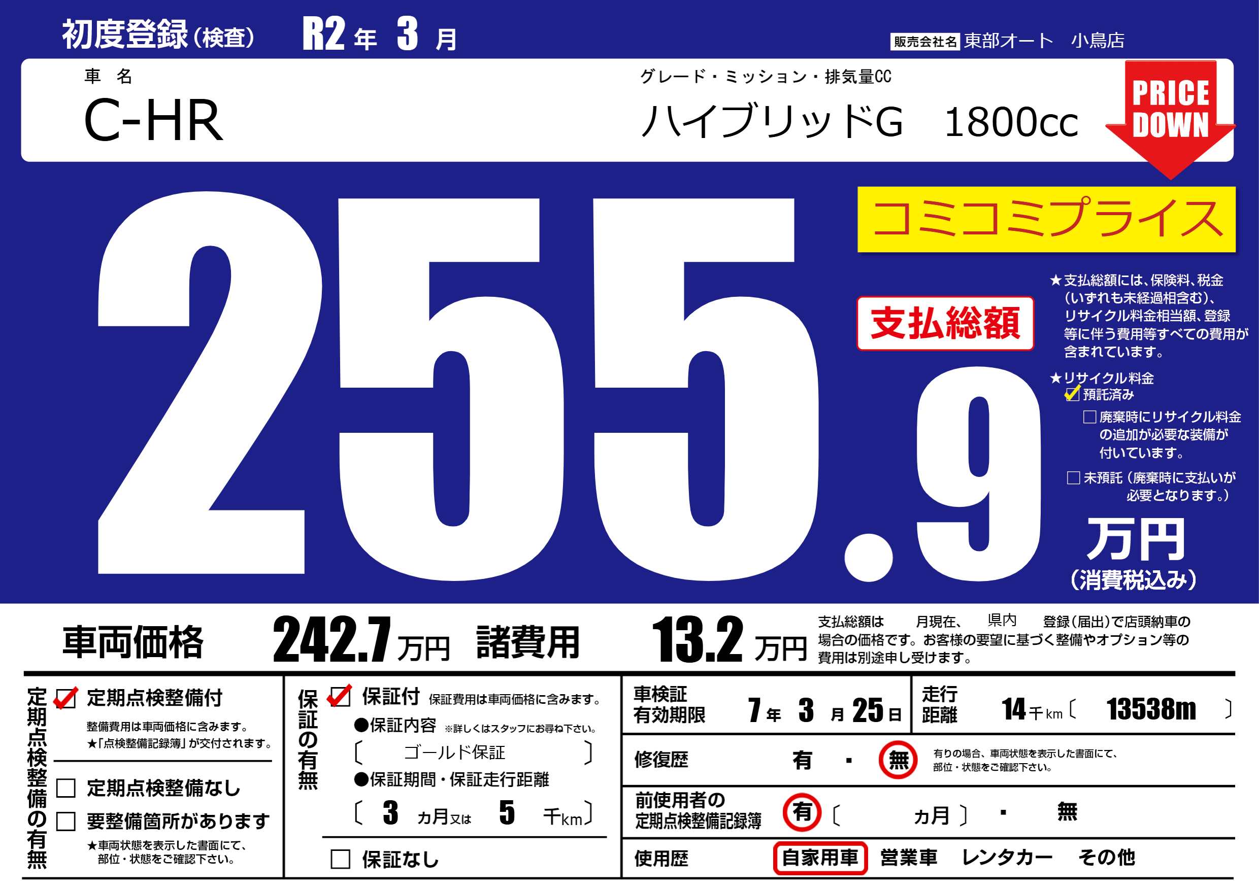| 車名 | C-HR | グレード ミッション 排気量 |