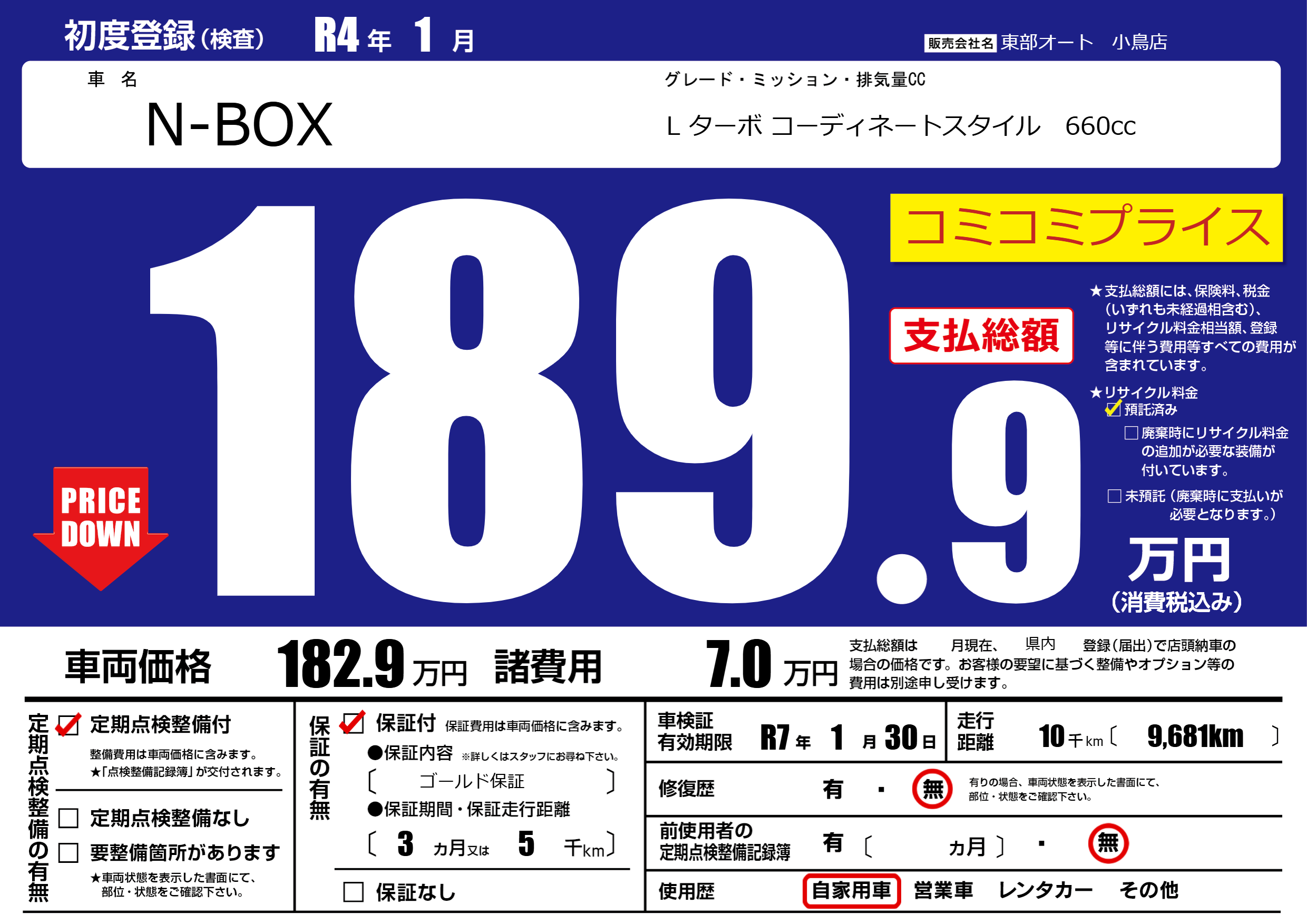 なし | 車検制限 | R7年1月30月 |