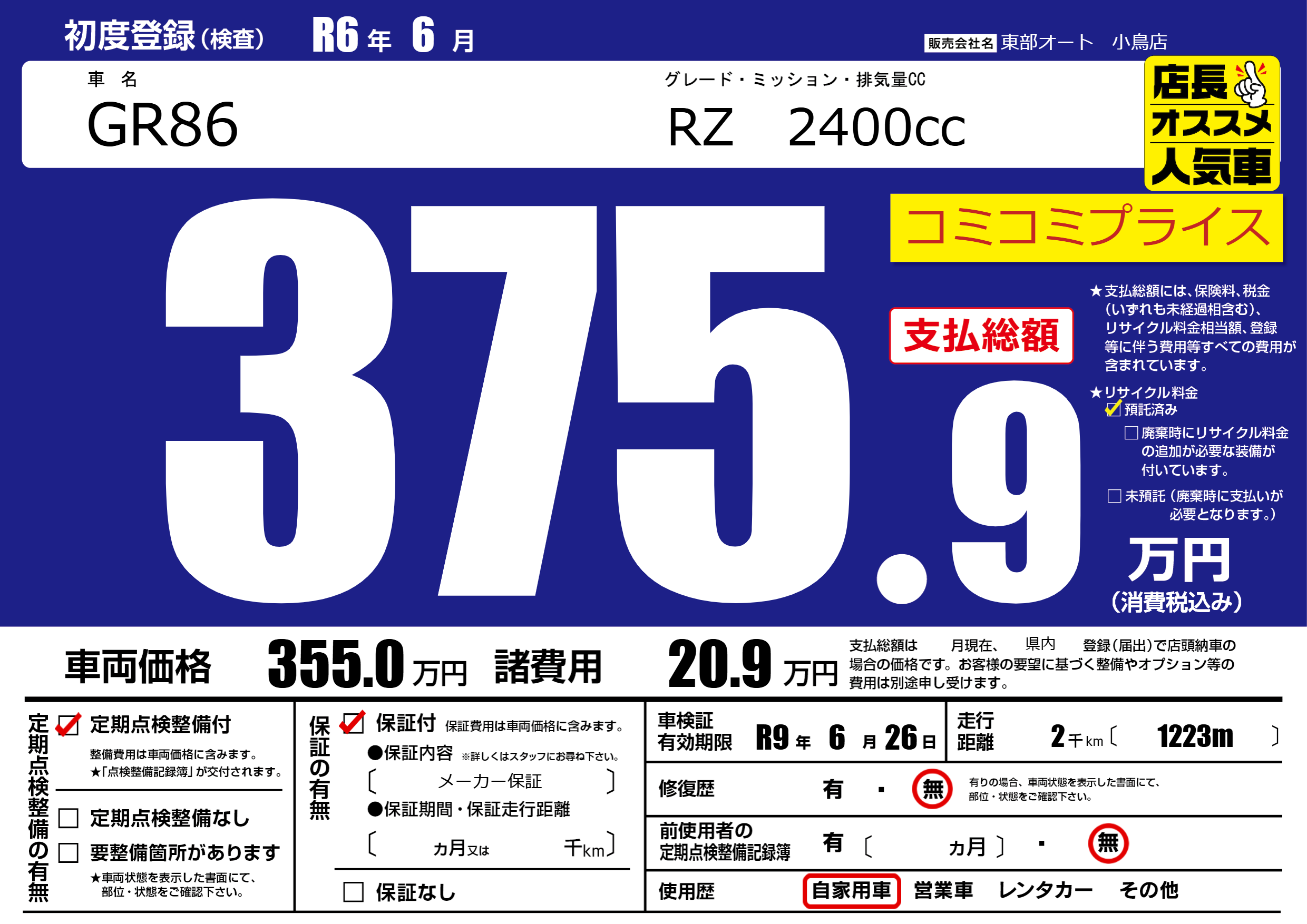 なし | 車検制限 | R9年6月26月 |