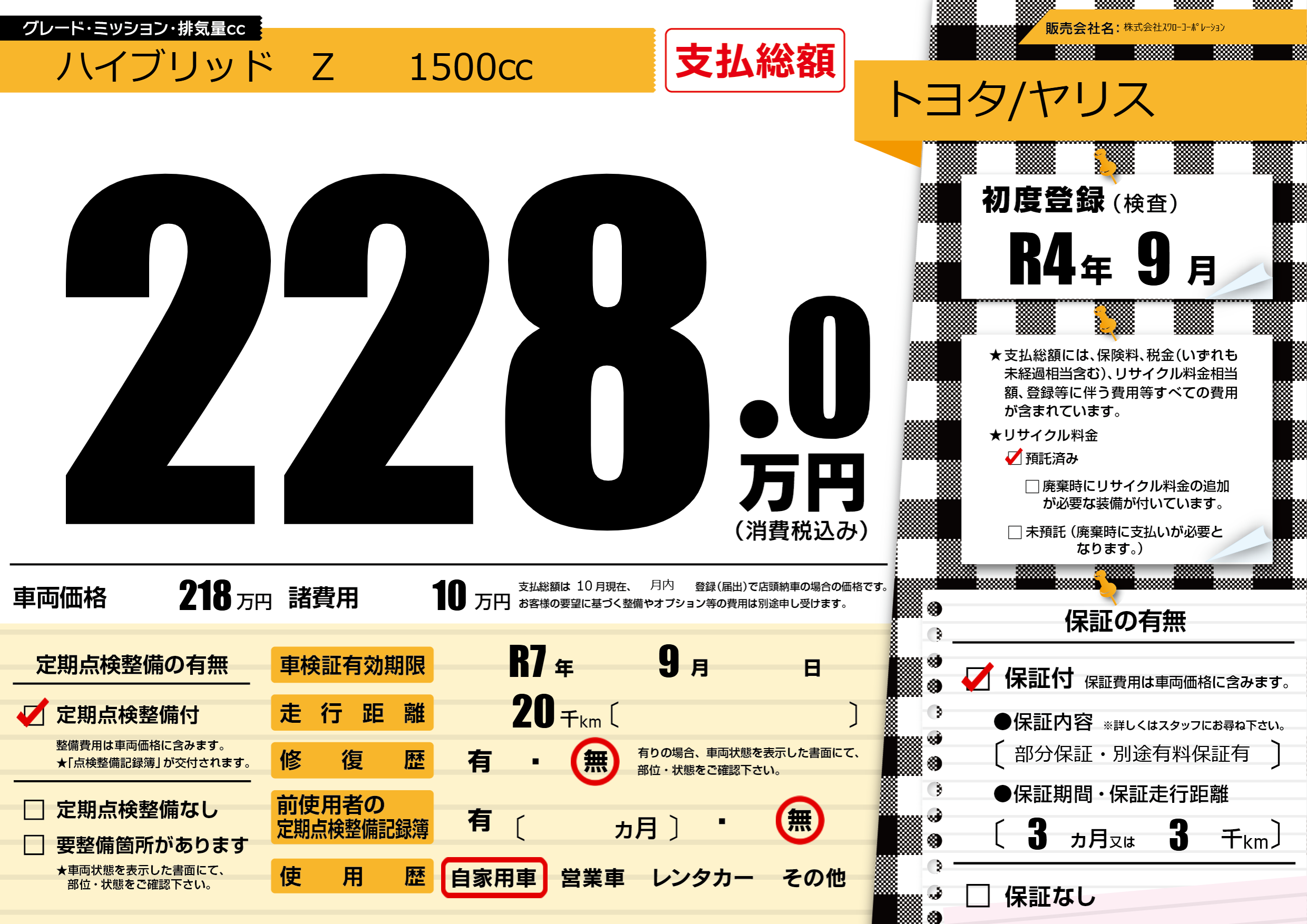 | 車検制限 | R7年 9月 - 日 | ||