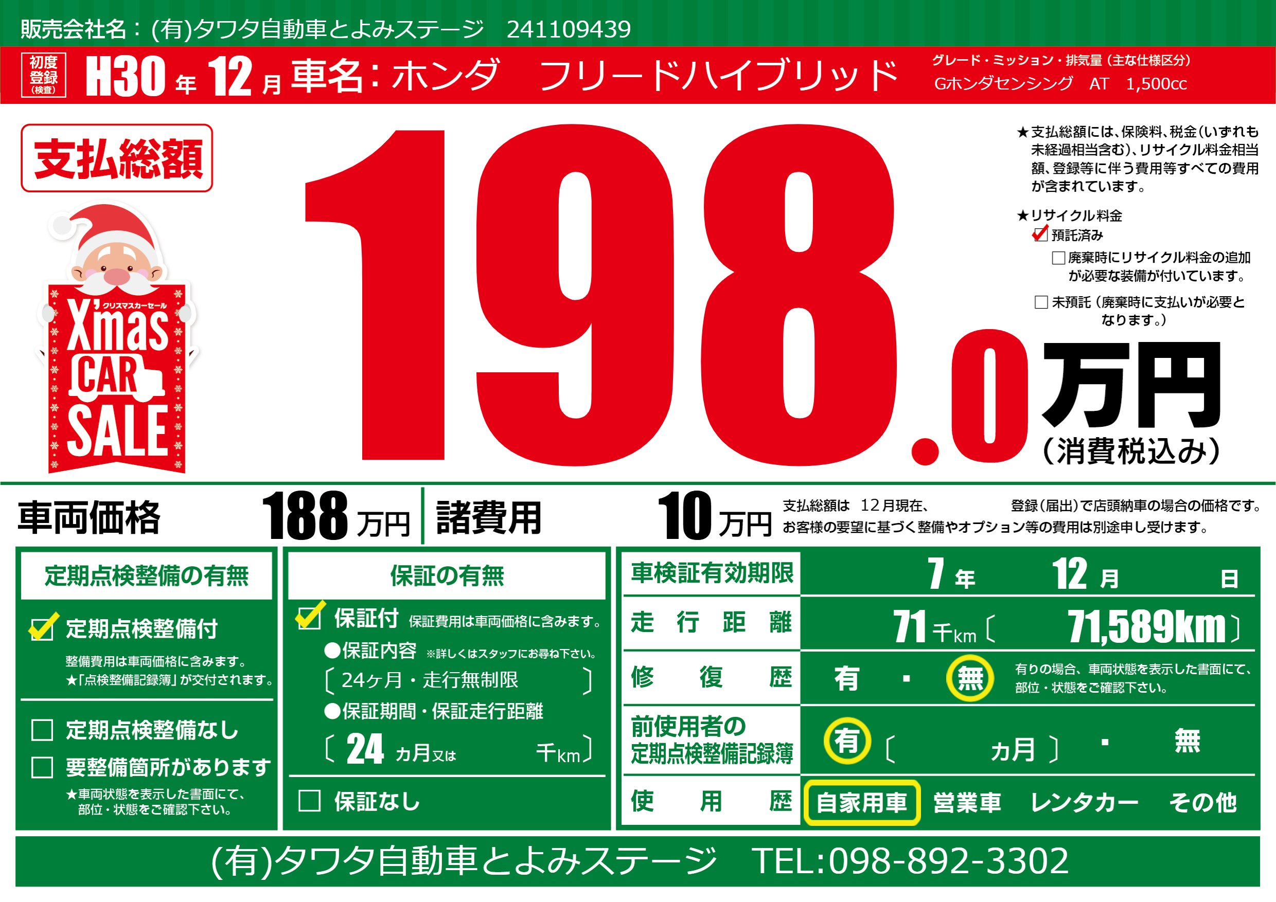 | 初年度登録 | H30年12月 | ||