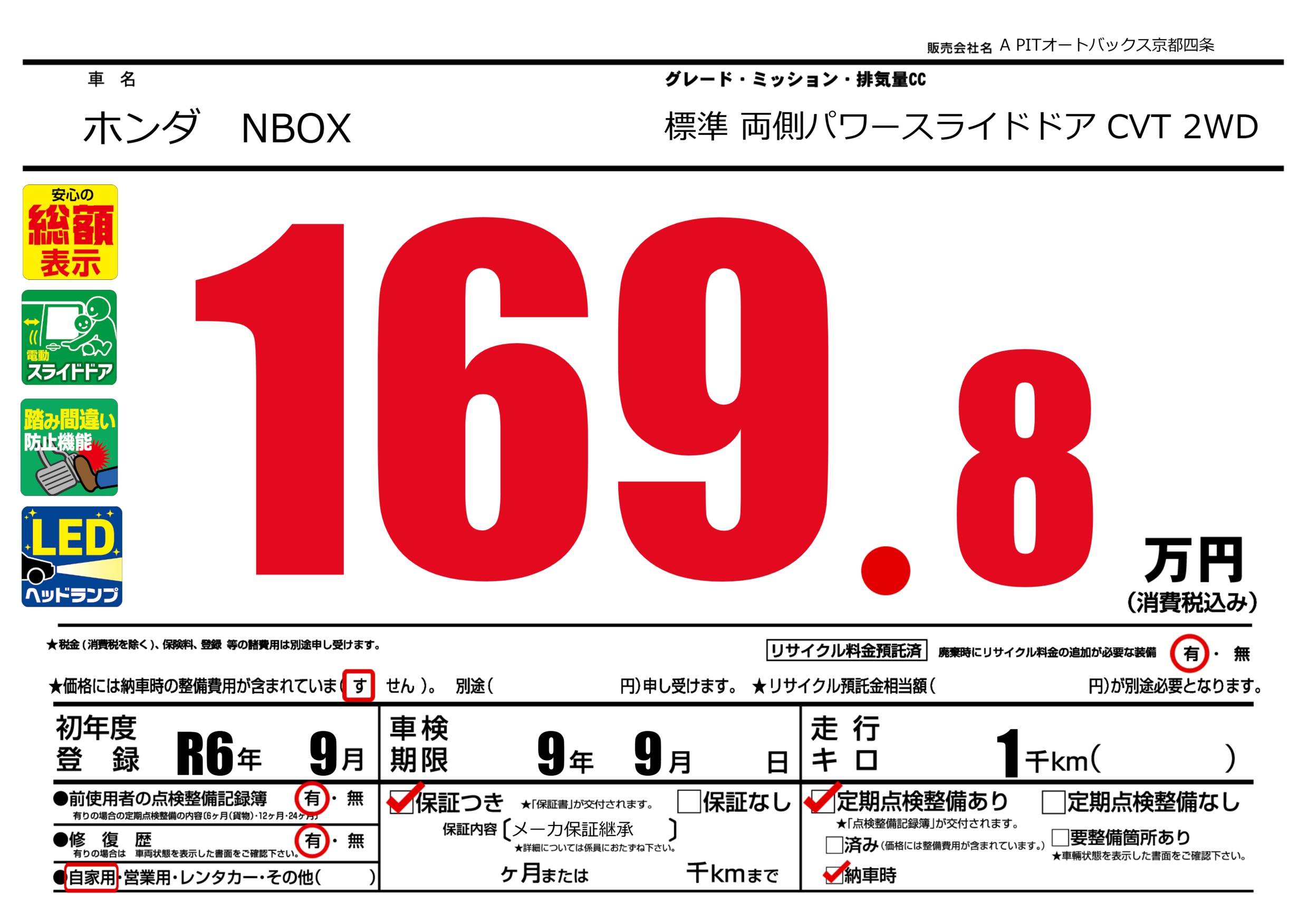あり | 車検制限 | 9年9月---月 |