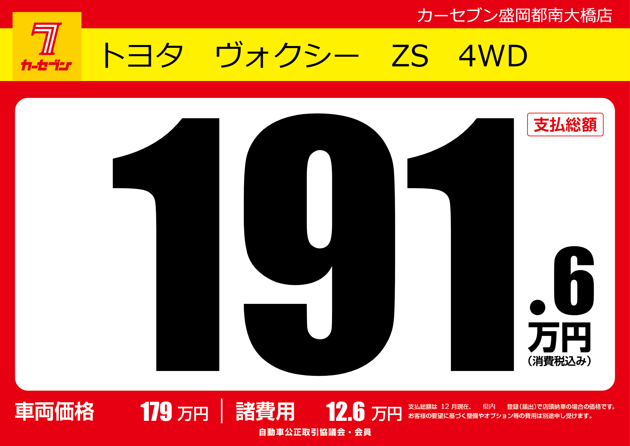 | 車名 | トヨタ ヴォクシー ZS 4WD | グレード ミッション 排気量 |