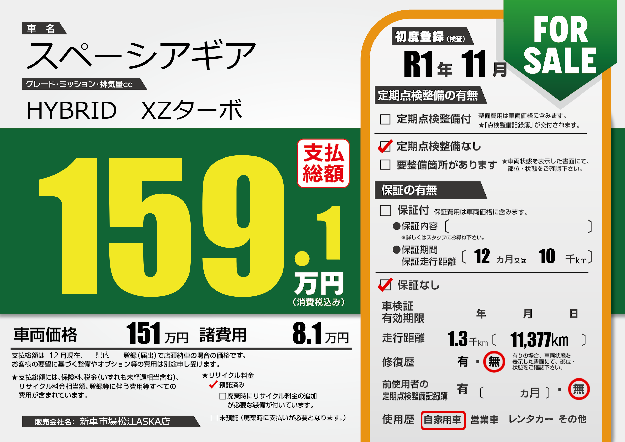 | 車名 | スペーシアギア | グレード ミッション 排気量 |