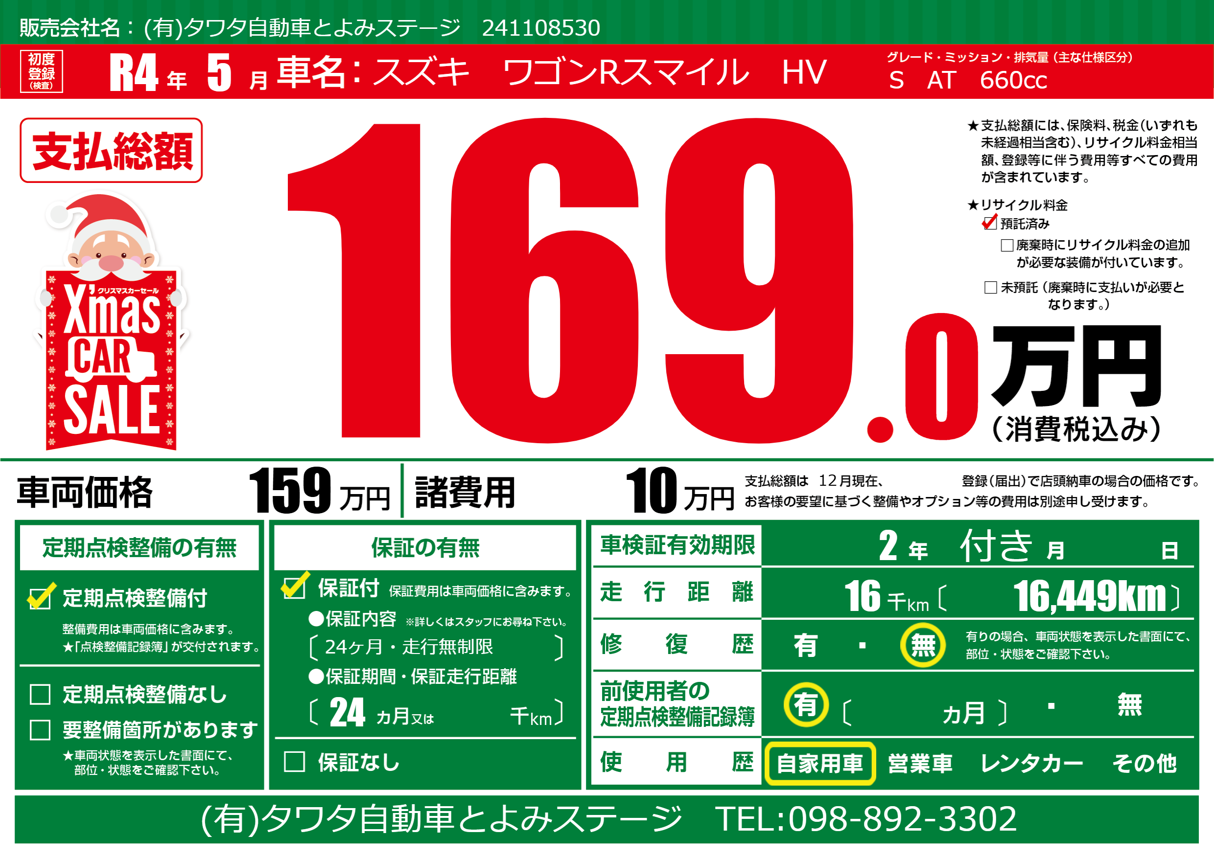 | 定期点検整備 | 定期点検整備あり | ||