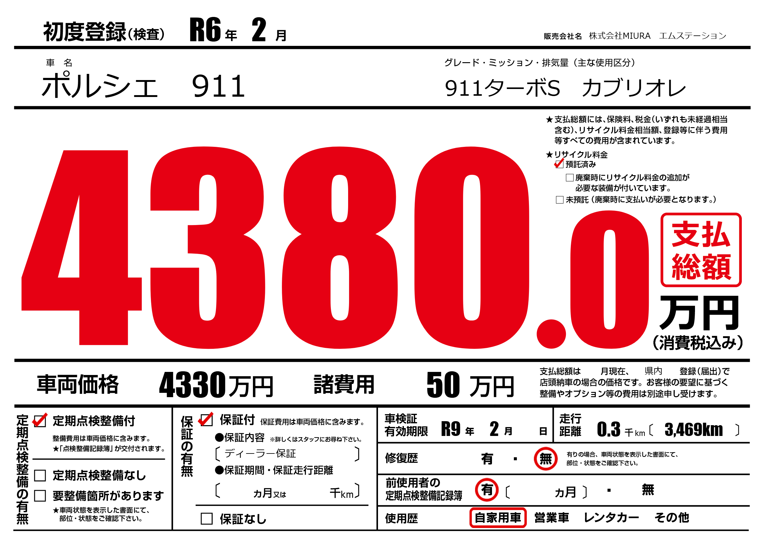 | 車名 | ポルシェ 911 | グレード ミッション 排気量 |