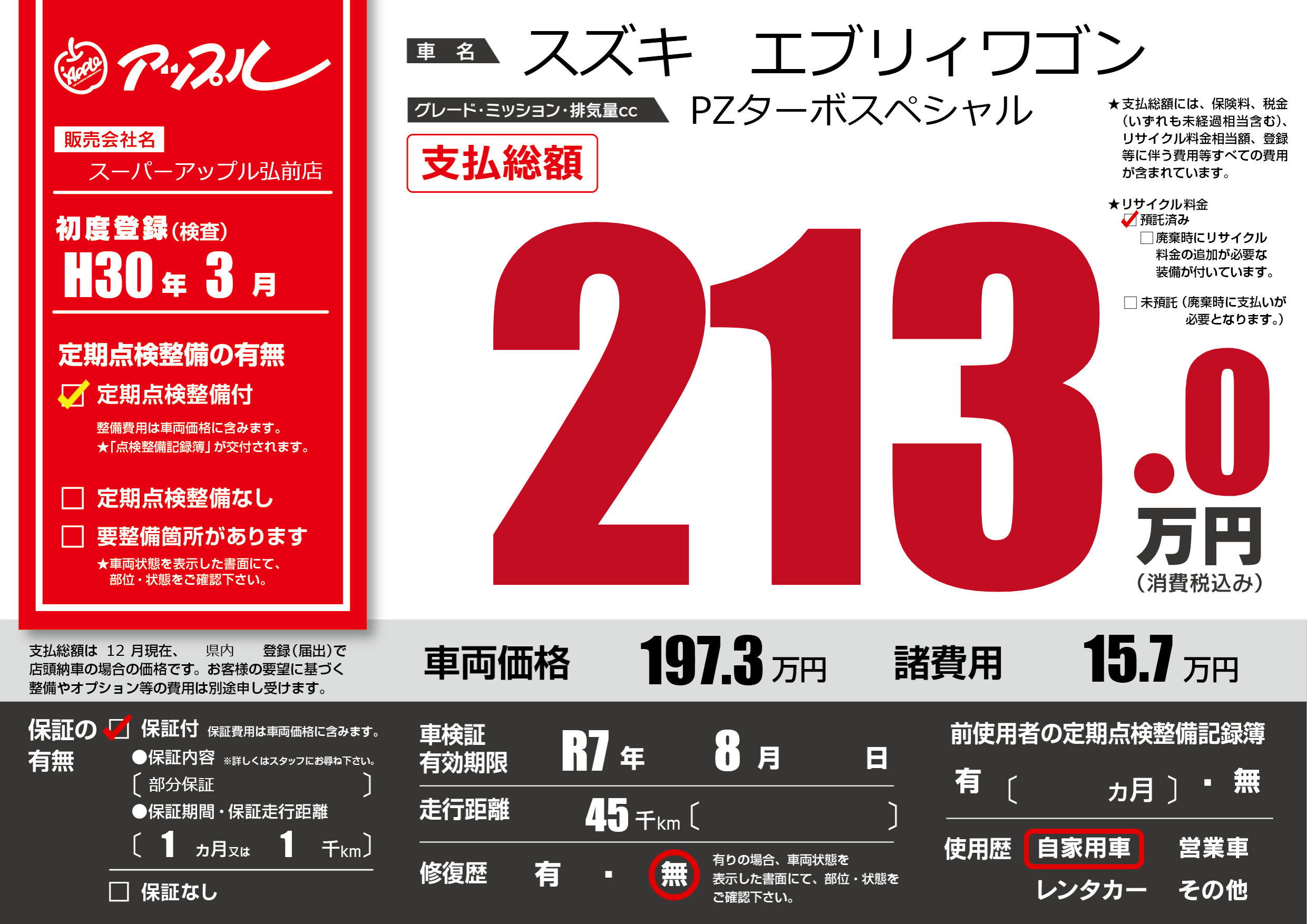 なし | 車検制限 | R7年8月---月 |